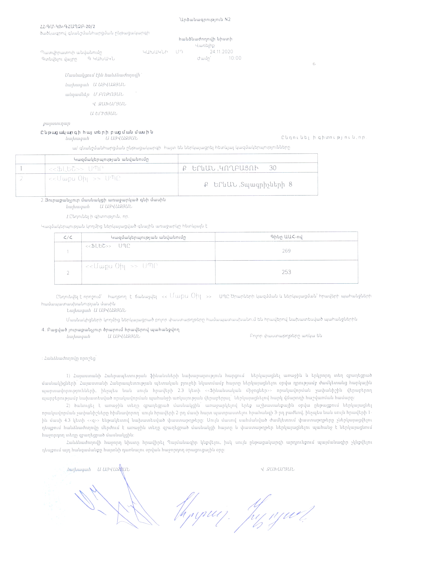 ՀՀ ԲՏԱ նախարարության կարիքների համար ԲՏԱՆ-ԳՀԾՁԲ-2020/08 ծածկագրով ԳՀ ընթացակարգի արդյունքում կնքված պայմանագրում փոփոխություն կատարելու մասին հայտարարություն: