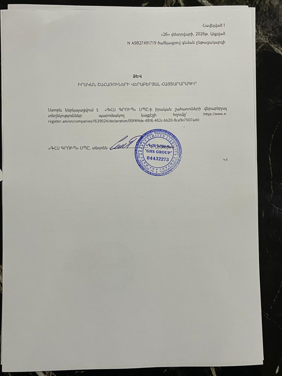 Объявление о данных фактических бенефициаров участника процедуры с кодом ШМАНХ-МАА ПЗБ-26/18 на закупку товаров, необходимых для нужд муниципалитета Ани Ширакской области Республики