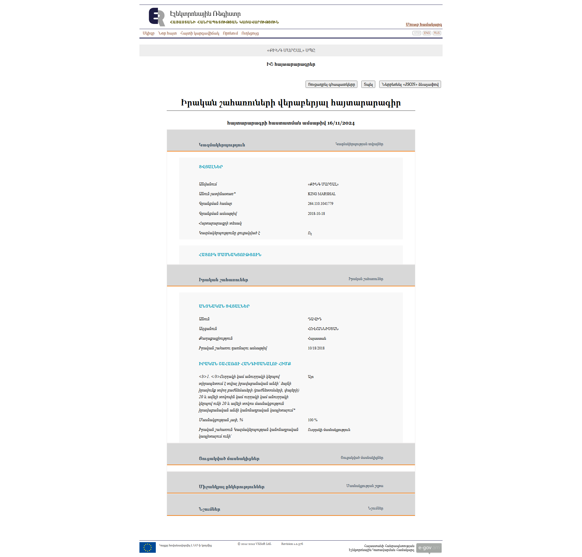 ՀՀ բարձր տեխնոլոգիական արդյունաբերության նախարարության 2025 թվականի կարիքների համար ընթացիկ նորոգման աշխատանքների ձեռքբերման նպատակով կազմակերպված ԲՏԱՆ-ԳՀԱՇՁԲ-2025/01 ծածկագրով գնման ընթացակարգի արդյունքում շահերի բախման բացակայության և իրական շահառուների տվյալների մասին հայտարարություն