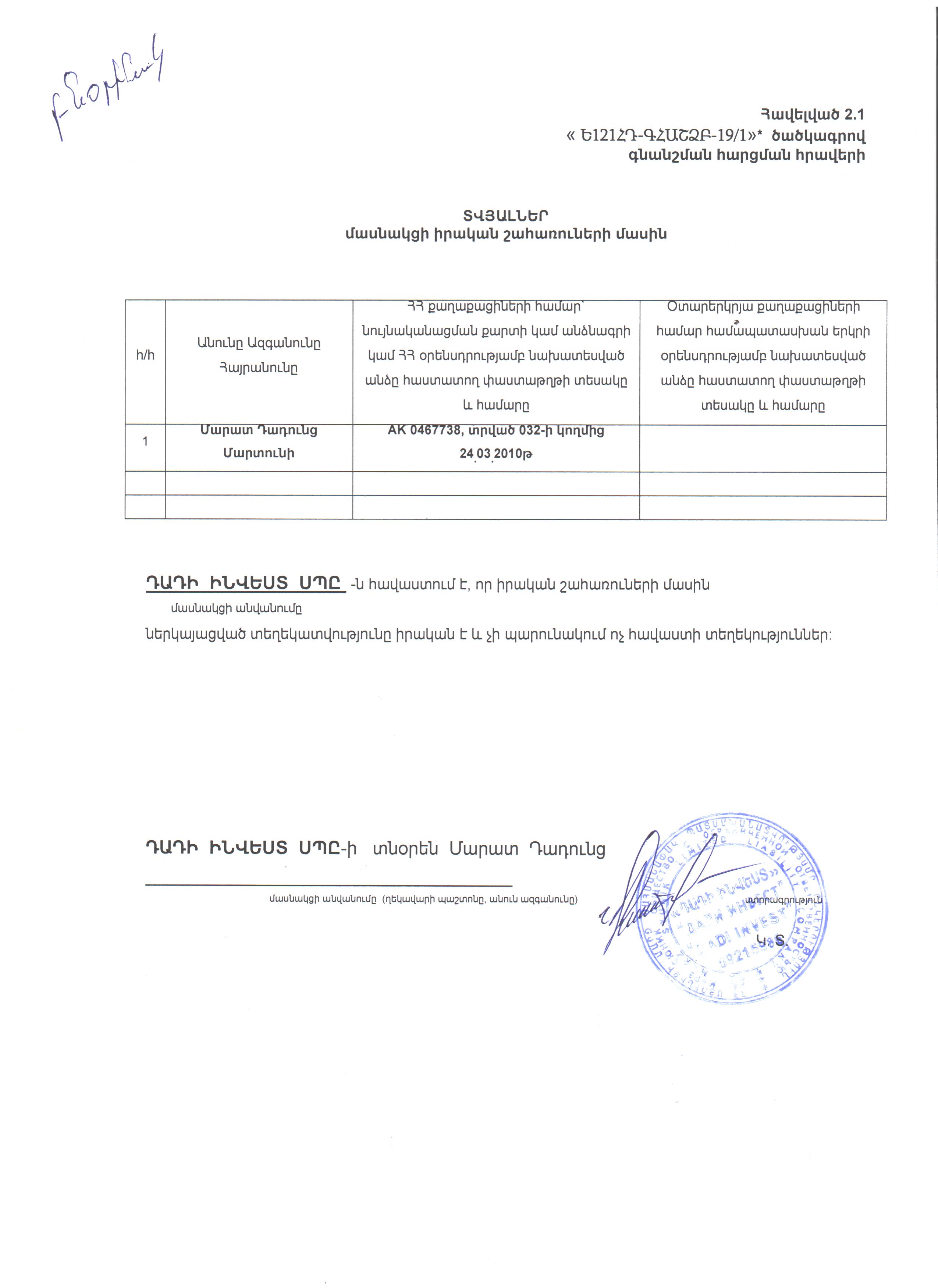 Datas about the real beneficiaries of the invitation to quotation
