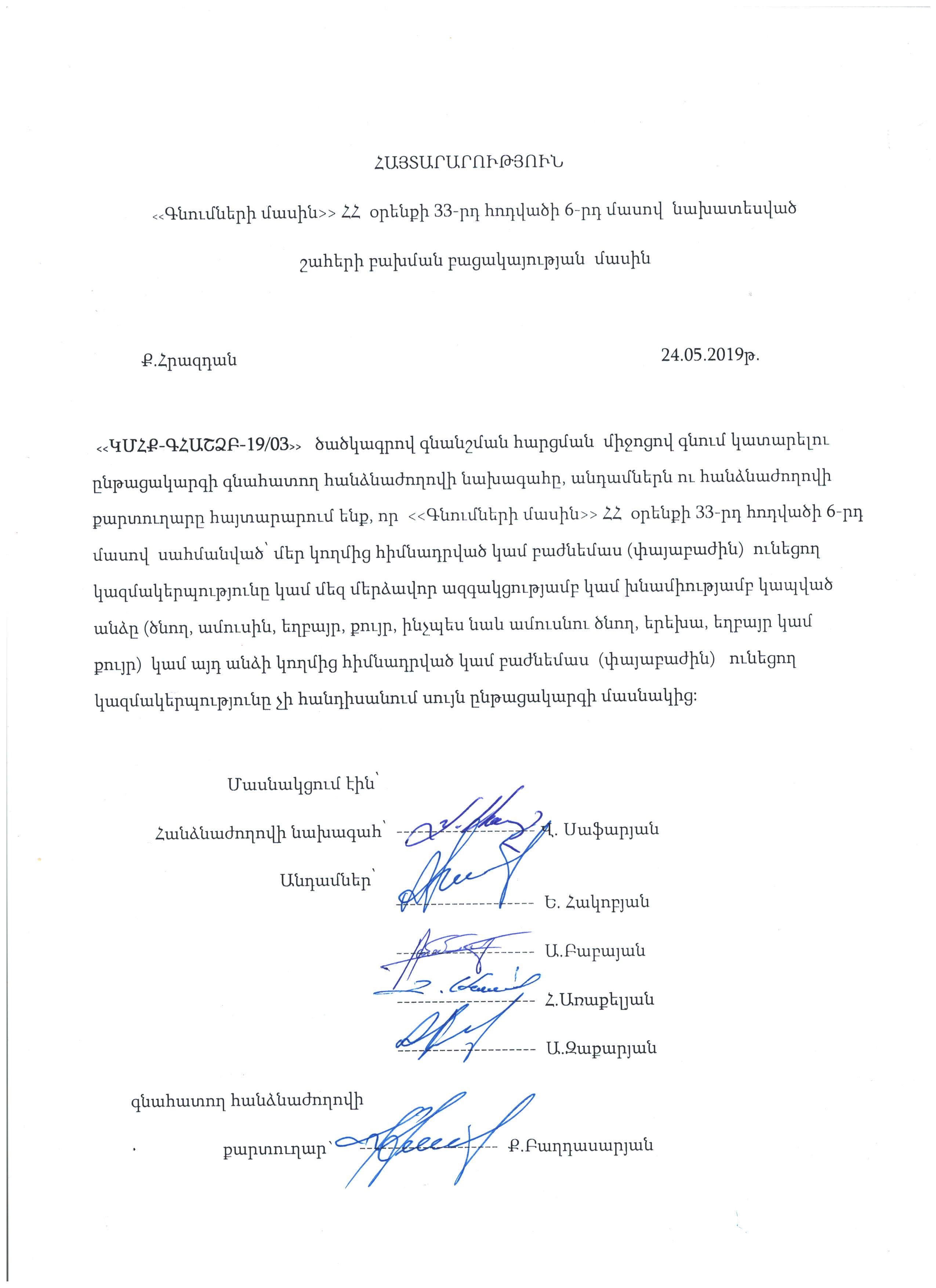Statement on the absence of conflict of interests with the code "KNBP-GHASHZB-19/03".