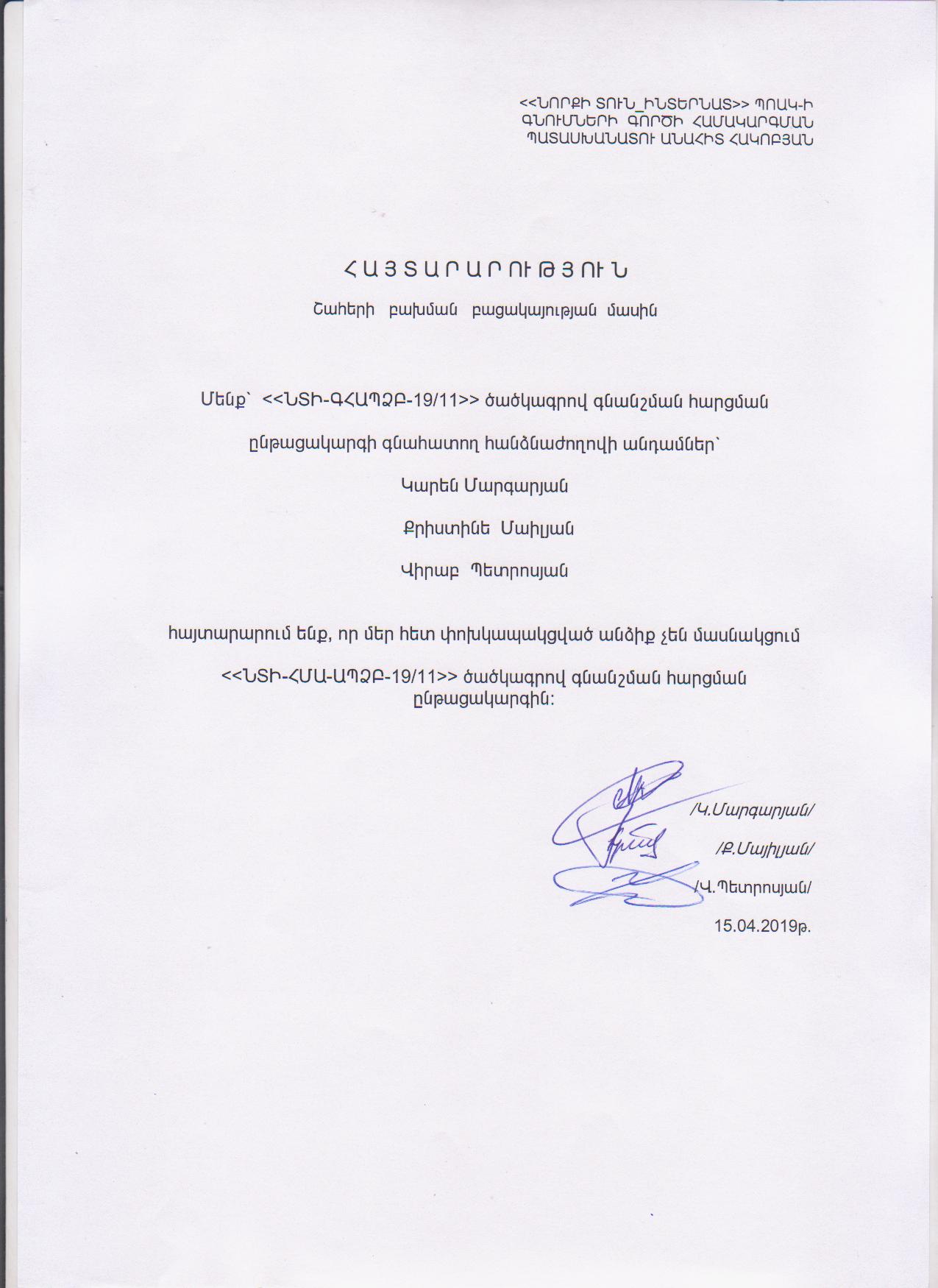 Առողջապահության նախարարության կողմից հայտարարված ՀՀ ԱՆ ԳՀԾՁԲ-2019/17 ծածկագրով գնման ընթացակարգի ընթացակարգի գնահատող հանձնաժողովի անդամների և քարտուղարի շահերի բախման բացակայության մասին հայտարարություններ