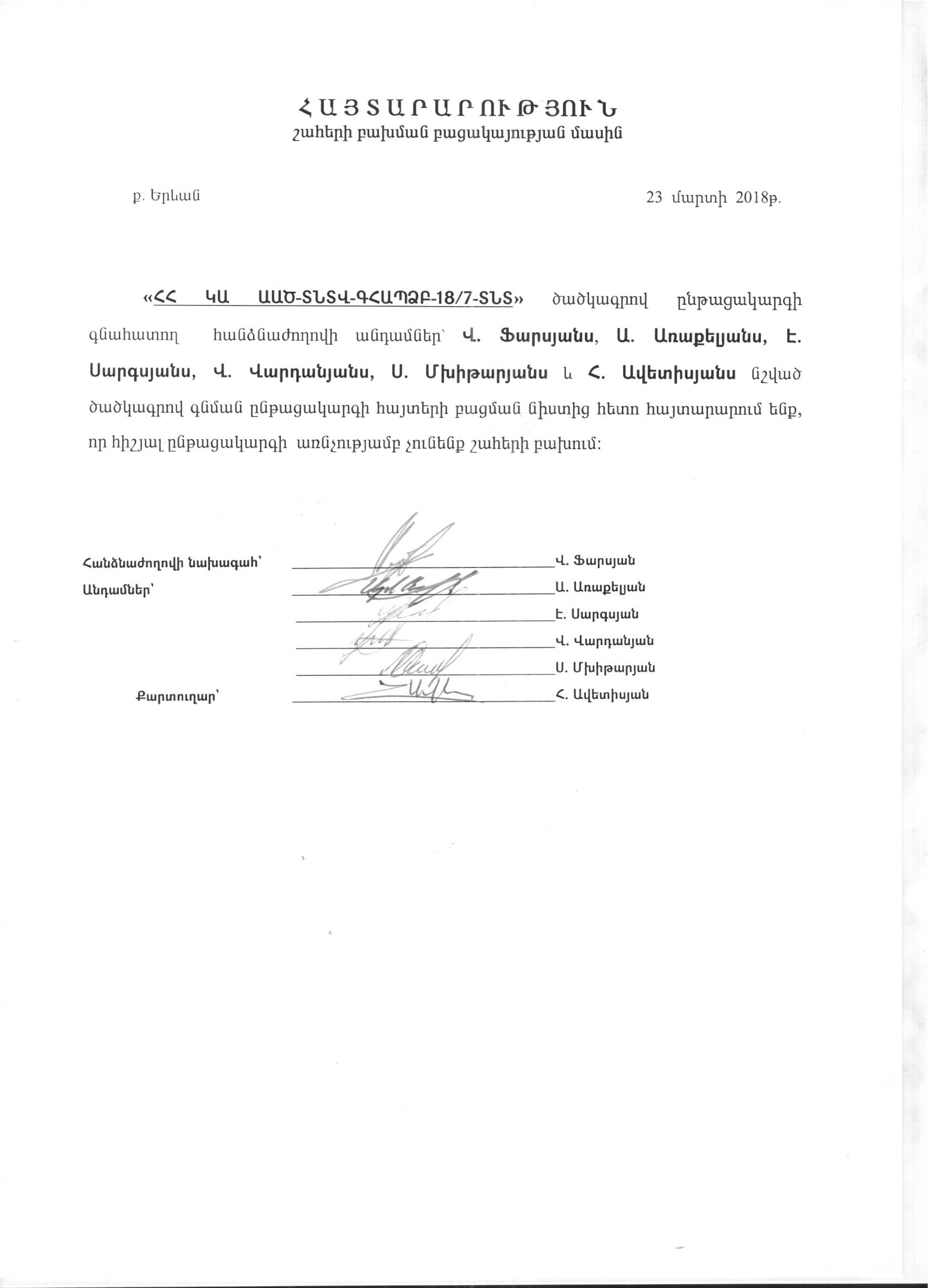 Statement on the absence of a clash of interests of the Procedure of the RA Civil Procedure ՀՀ ՏՄԻՔԿԾ-ԳՀԱՊՁԲ-18/03 organized by Ijevan Municipal Utility Service