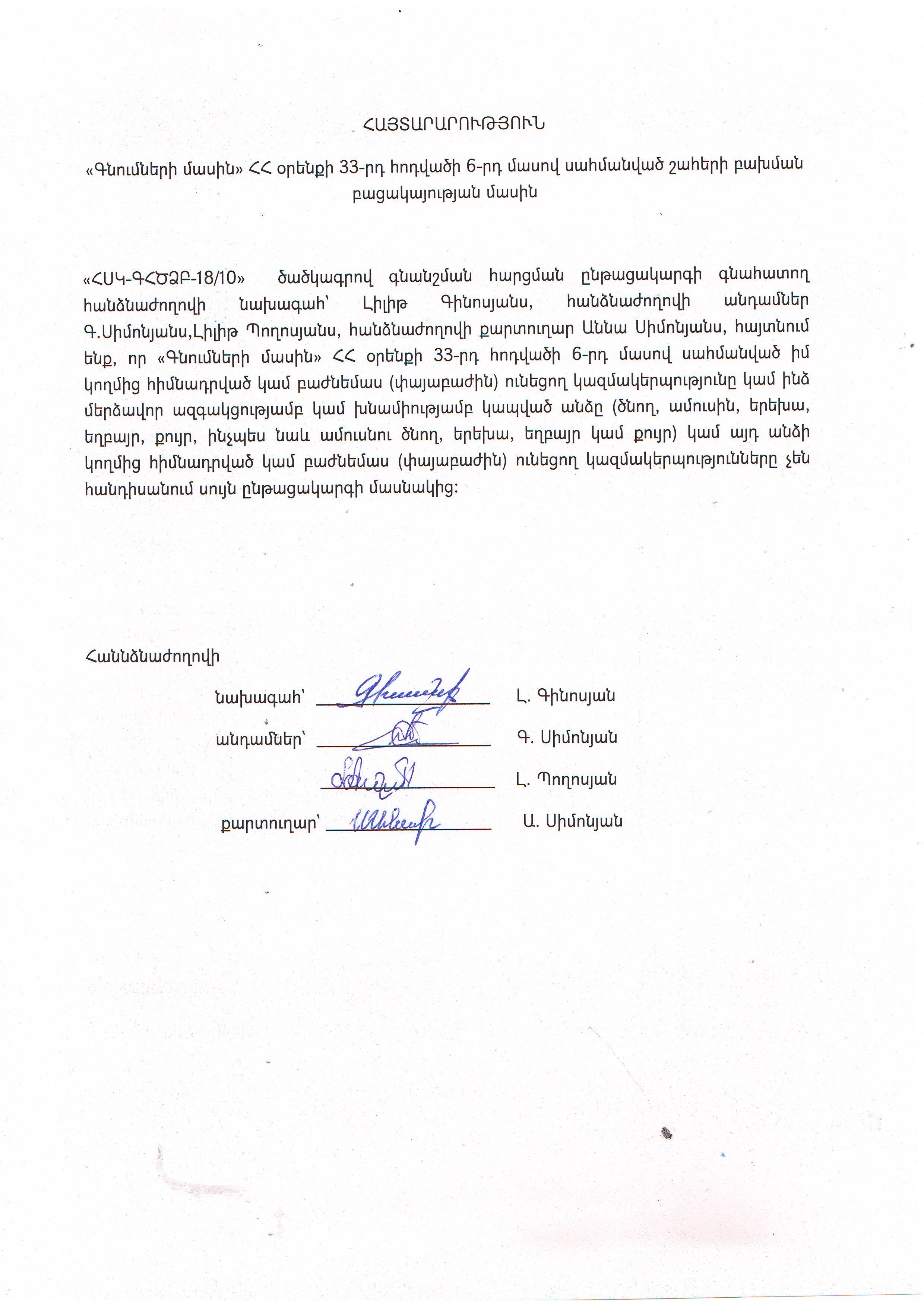 Hot line / Supporting service +374(11)800-600