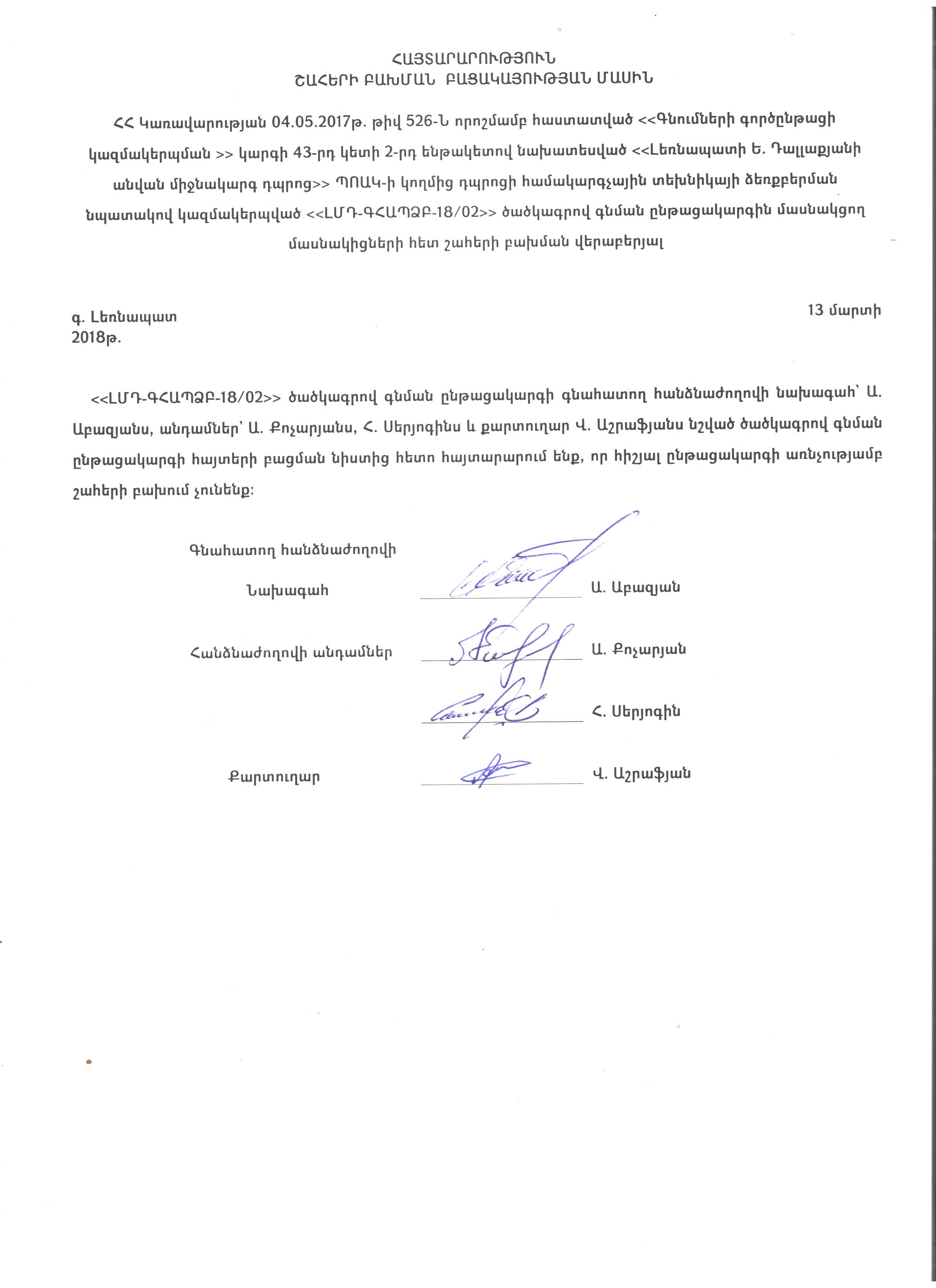 Announcement about the absence of conflict of interest