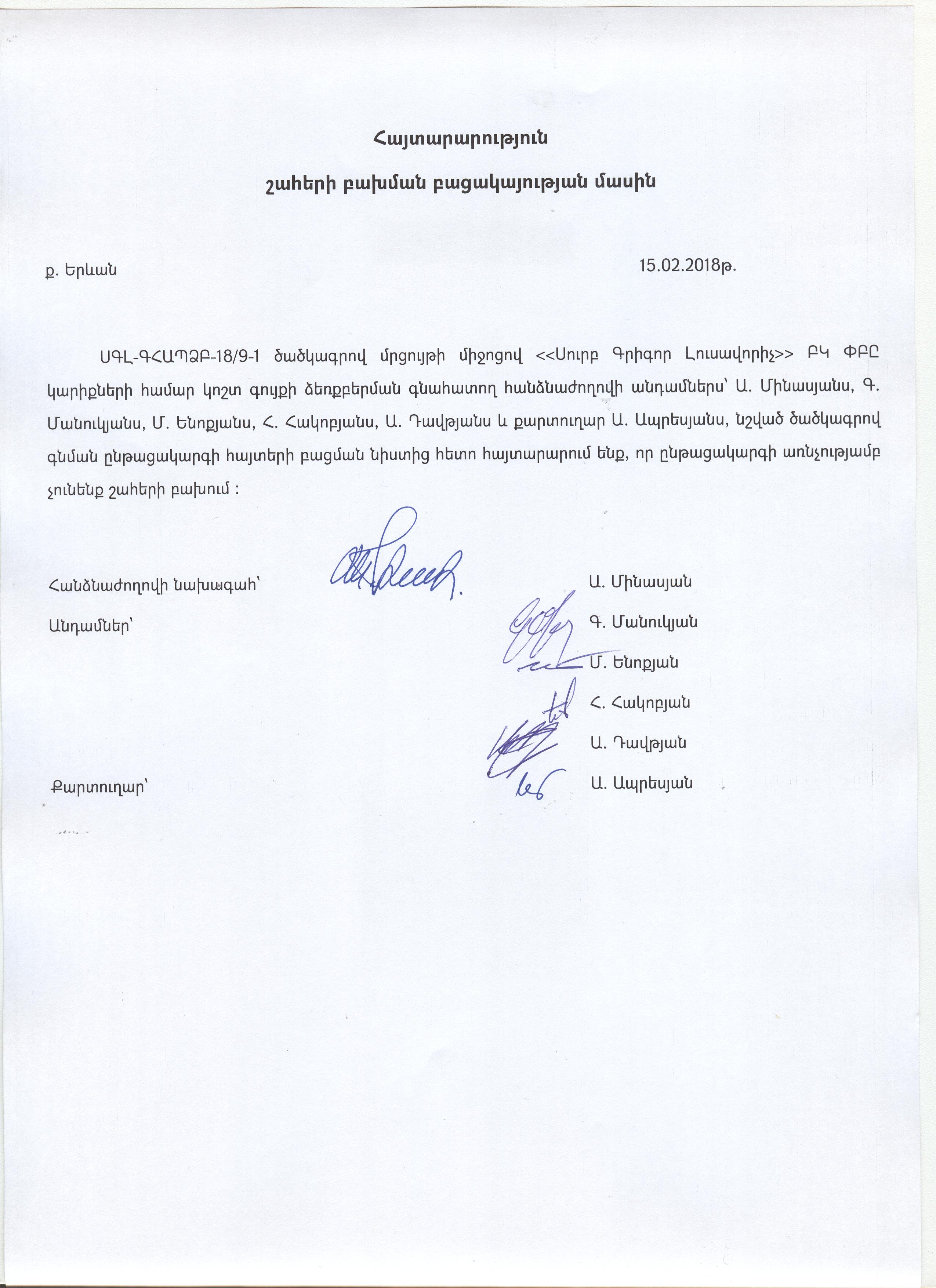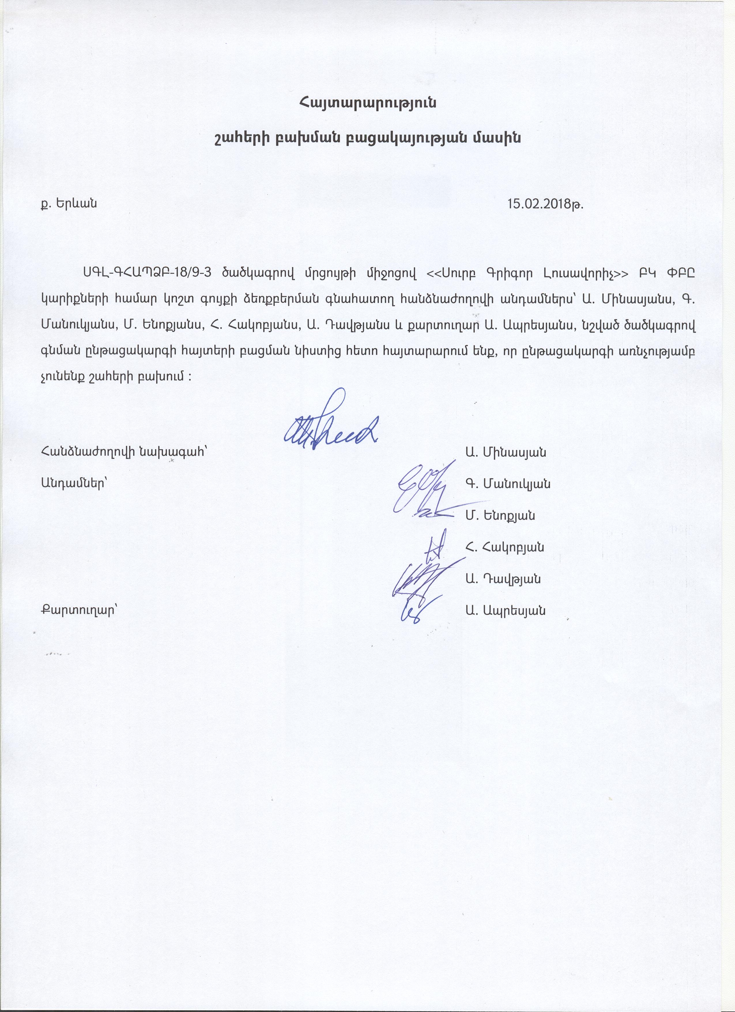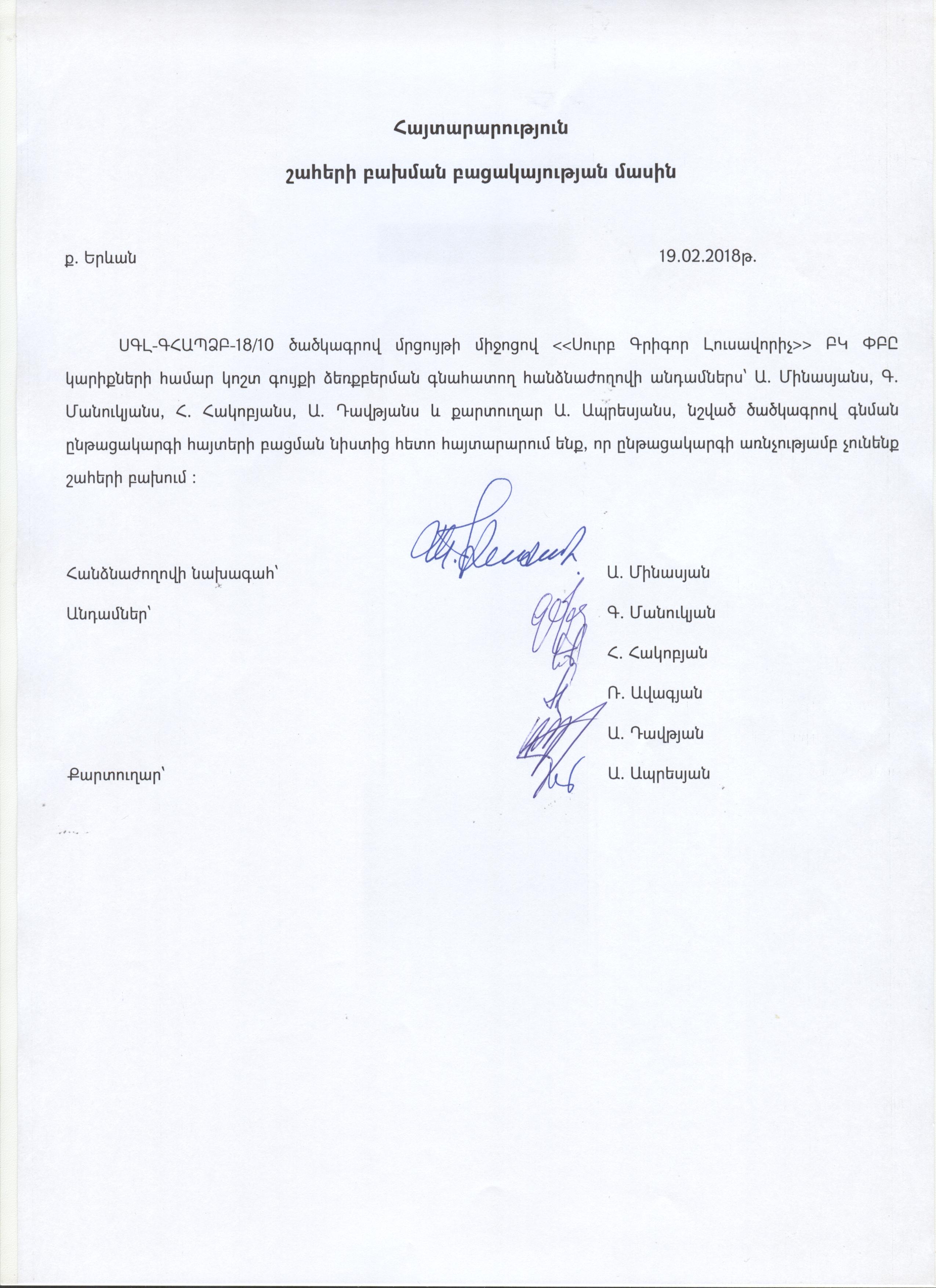 Announcement about the absence of conflict of interest