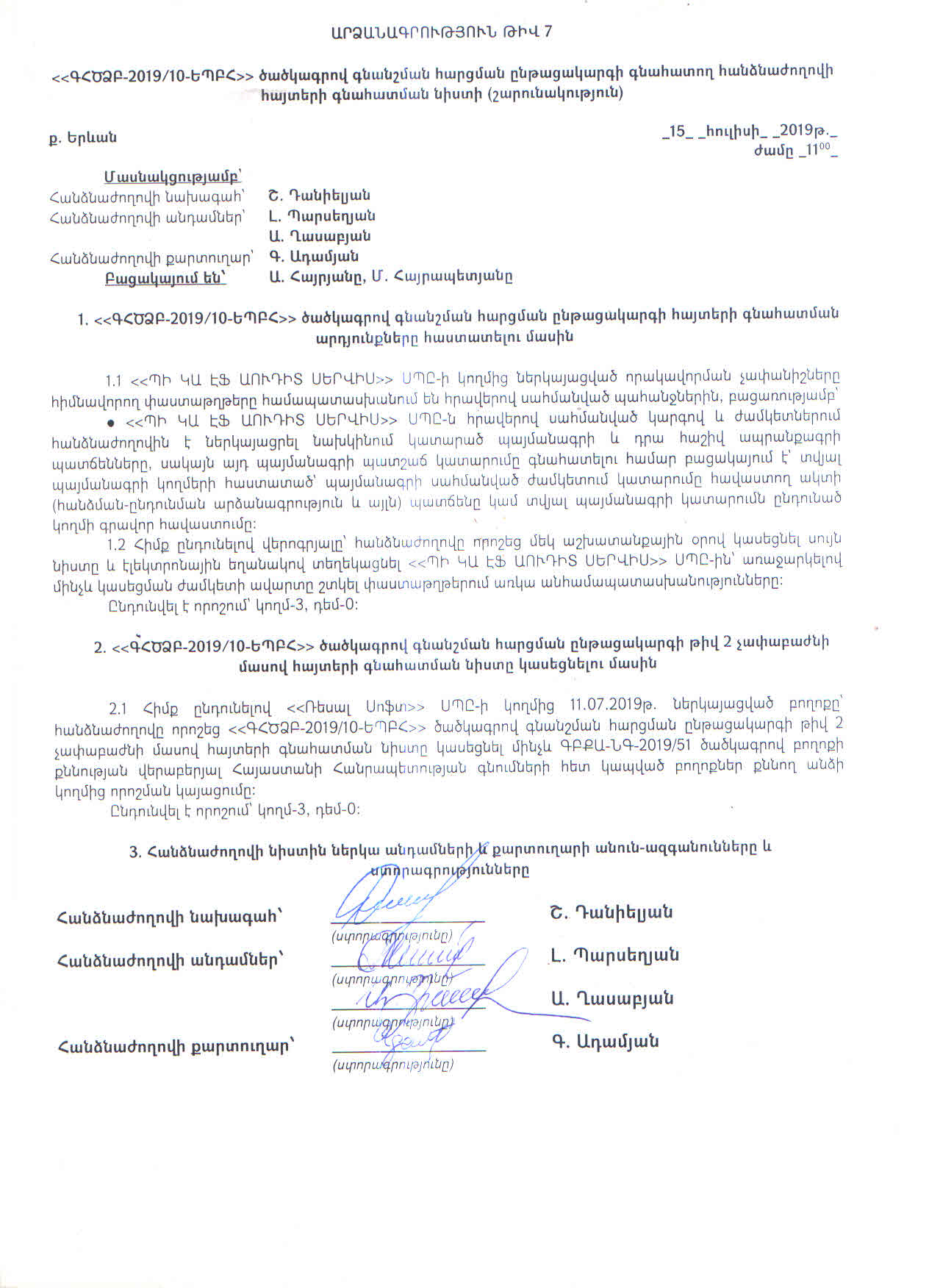 The Karbi Municipality of Aragatsotn Marz presents the information on the bid evaluation session of the Quotation Quotation Quotation Committee