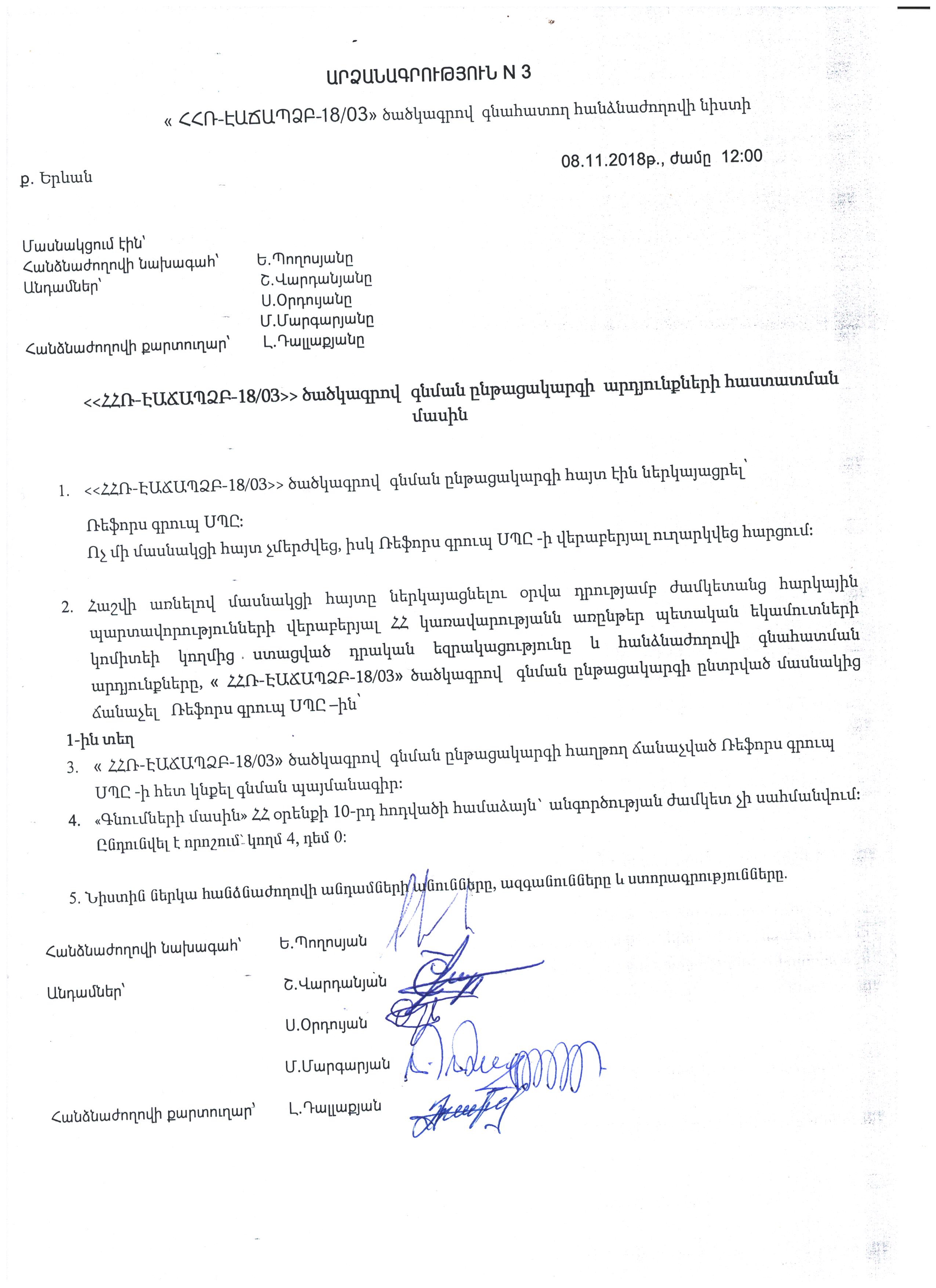 ԲՊԱԷՀ-ԷԱԱՊՁԲ-18/19 ծածկագրով գնահատման նիստի արձանագրություն