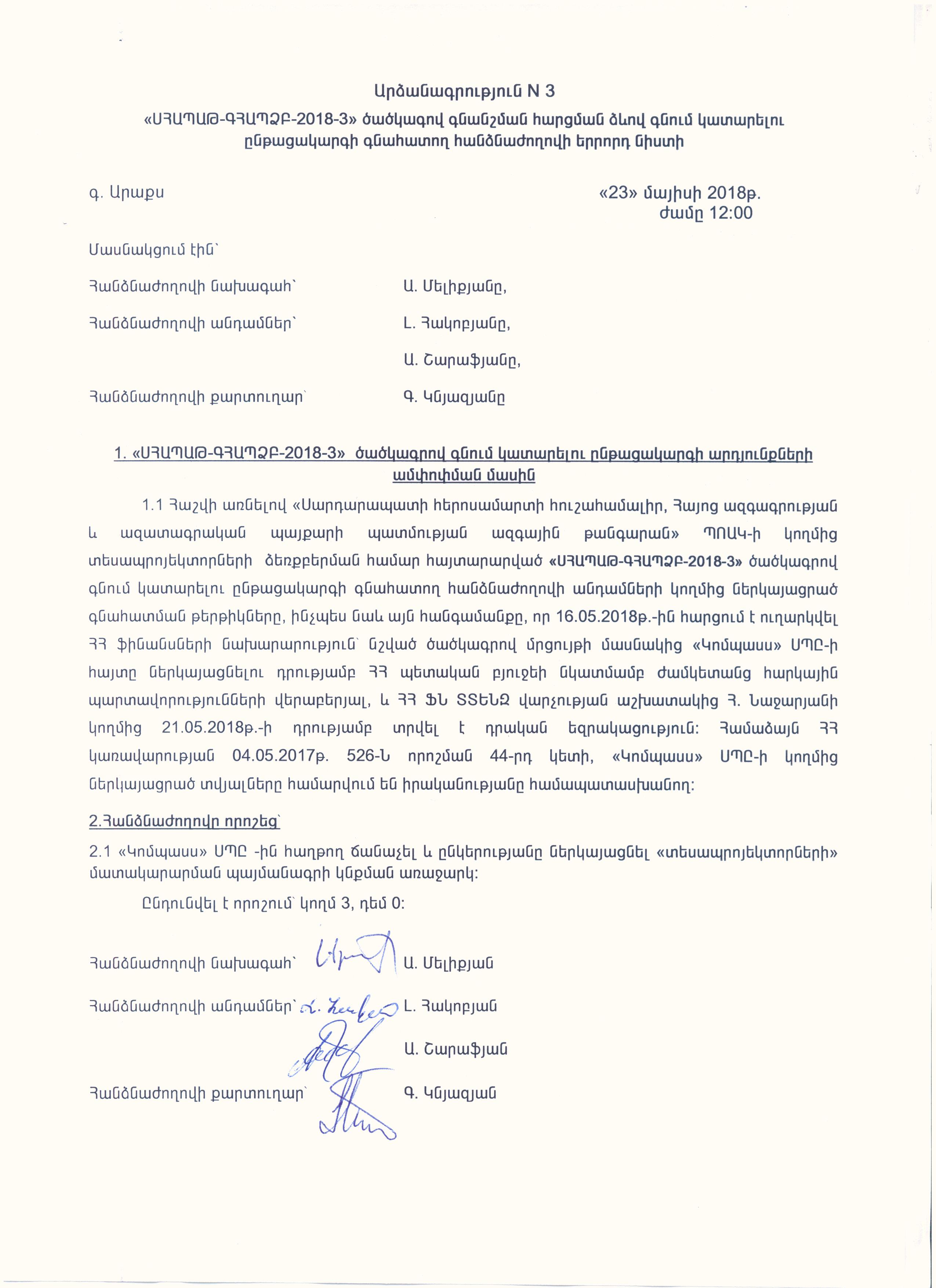 Protocol of the bids opening meeting