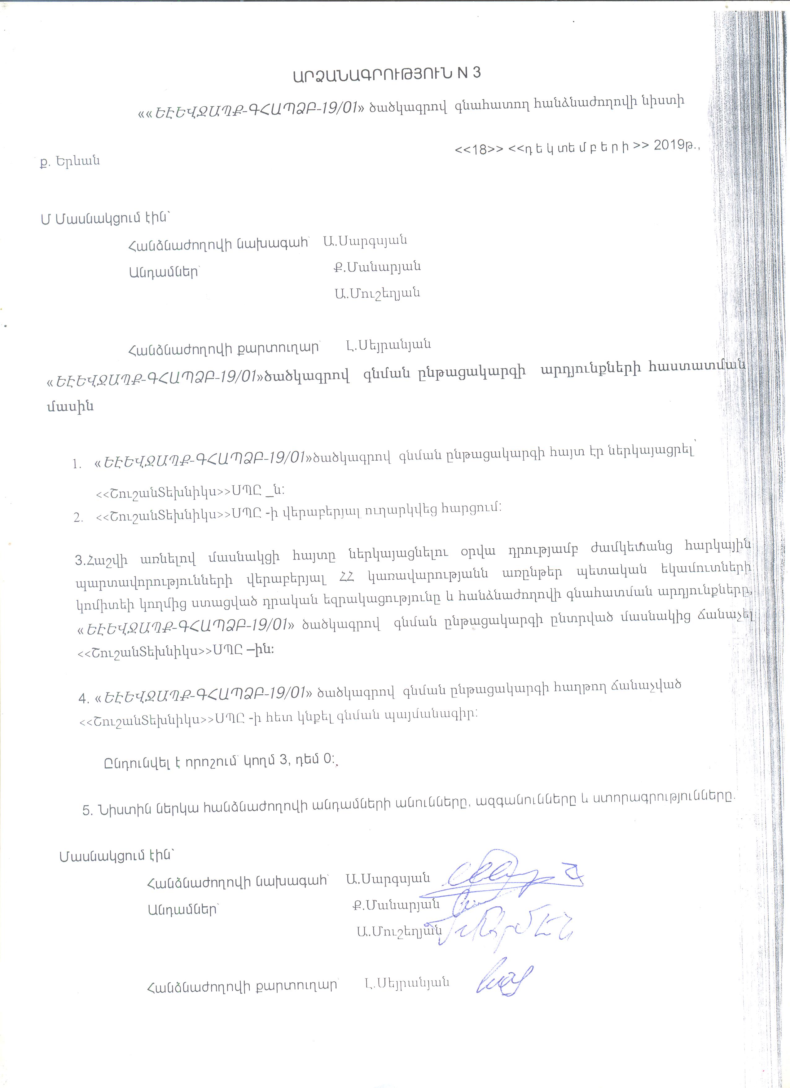 ԱԱ-ԳՊՁԲ-1 ծածկագրով գնման ընթացակարգի հայտերի բացման նիստի արձանագրություն