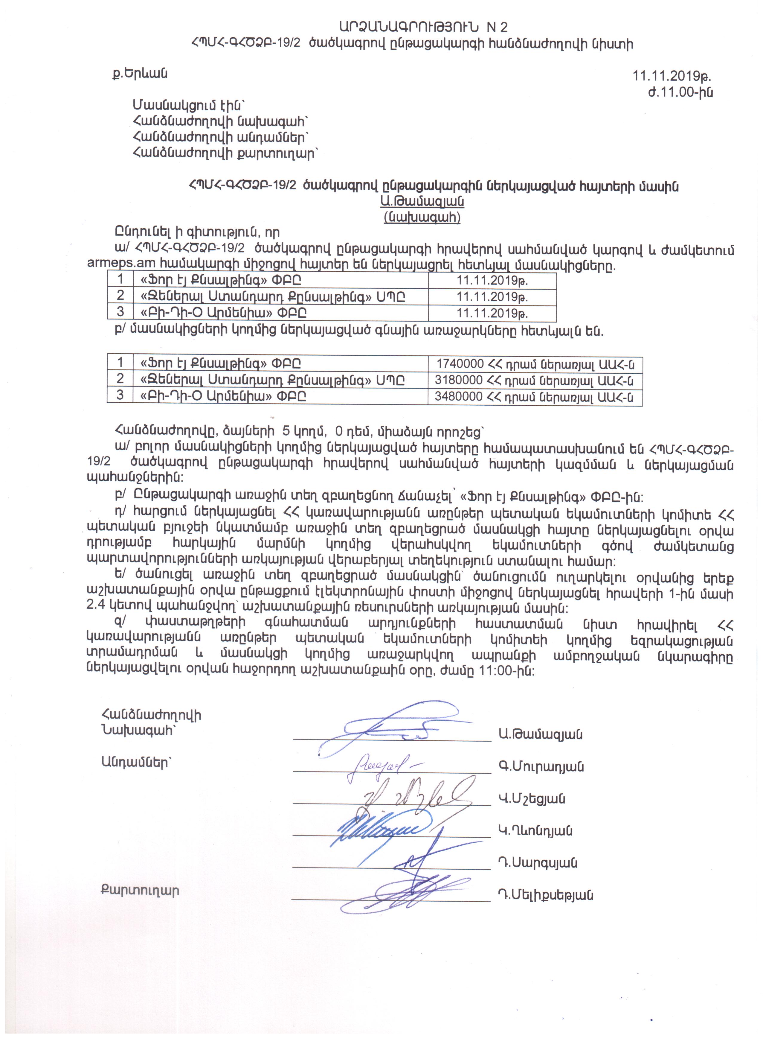 Protocol of the bids opening meeting