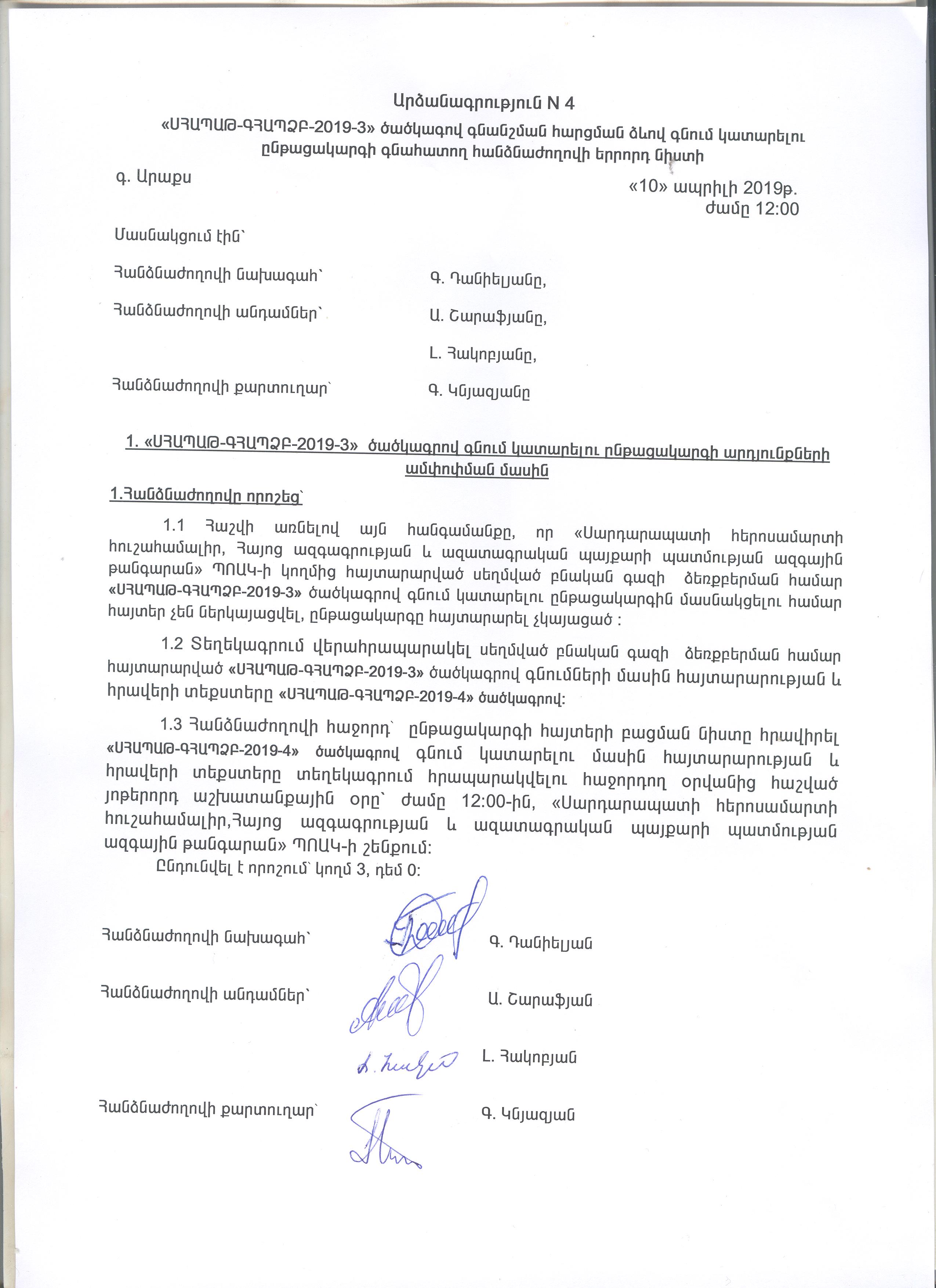 ՀՀԱՆ-ԳՀԾՁԲ-19/5 ծածկագրով գնման ընթացակարգի հայտերի 3-րդ նիստի արձանագրություն