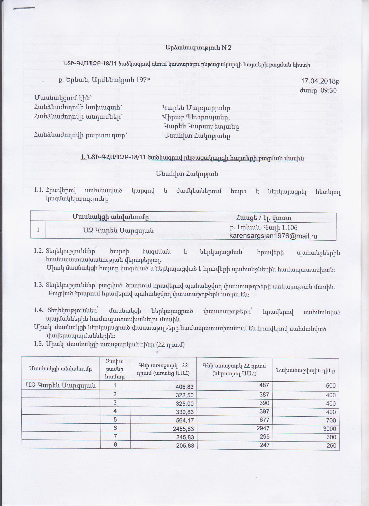 Invitation for the purchase of foods for the needs of the Police of the Republic of Armenia