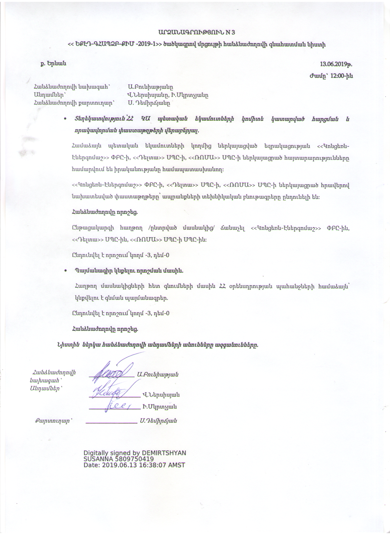 Protocol of the bids opening meeting