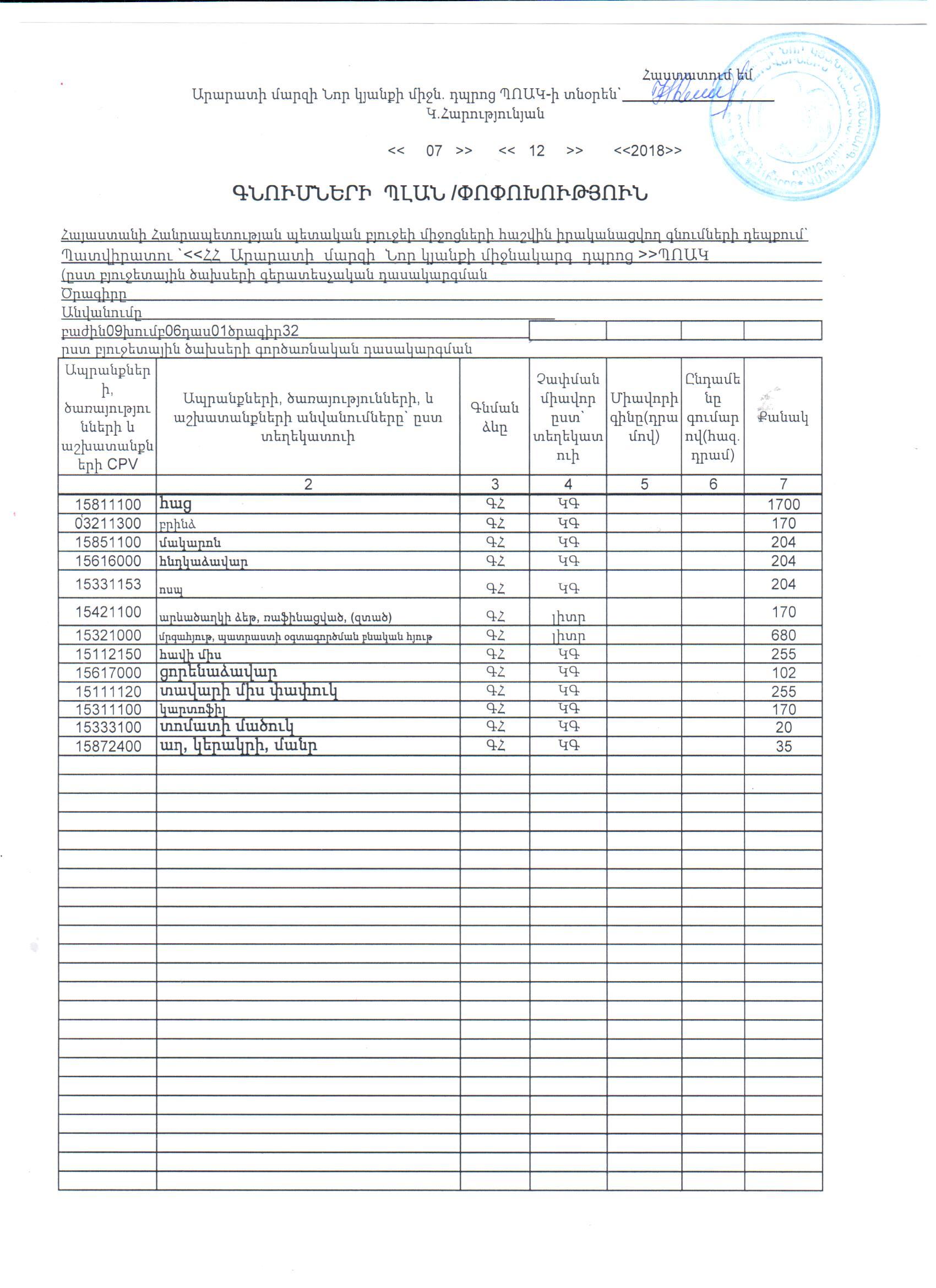 ՀՀ ԱՆ <<Դատաբժշկական գիտագործնական կենտրոն>> ՊՈԱԿ-ի կողմից հայտարարված 2018 թվականի ձեռքբերման ենթակա ապրանքների, աշխատանքների և ծառայությունների գնումների պլանի փոփոխված տարբերակը