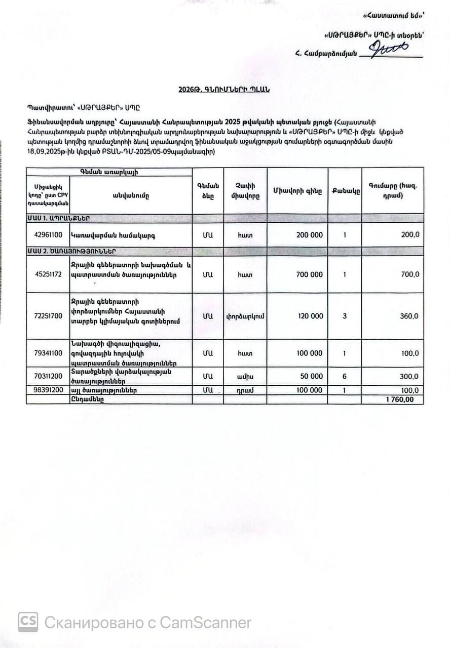 «ԵՐԵՎԱՆԻ ԳԱԳԻԿ ՍՏԵՓԱՆՅԱՆԻ ԱՆՎԱՆ Հ.135 ՀԻՄՆԱԿԱՆ ԴՊՐՈՑ» ՊՈԱԿ-Ի 2026 Թ-Ի ԳՆՈՒՄՆԵՐԻ ՊԼԱՆ