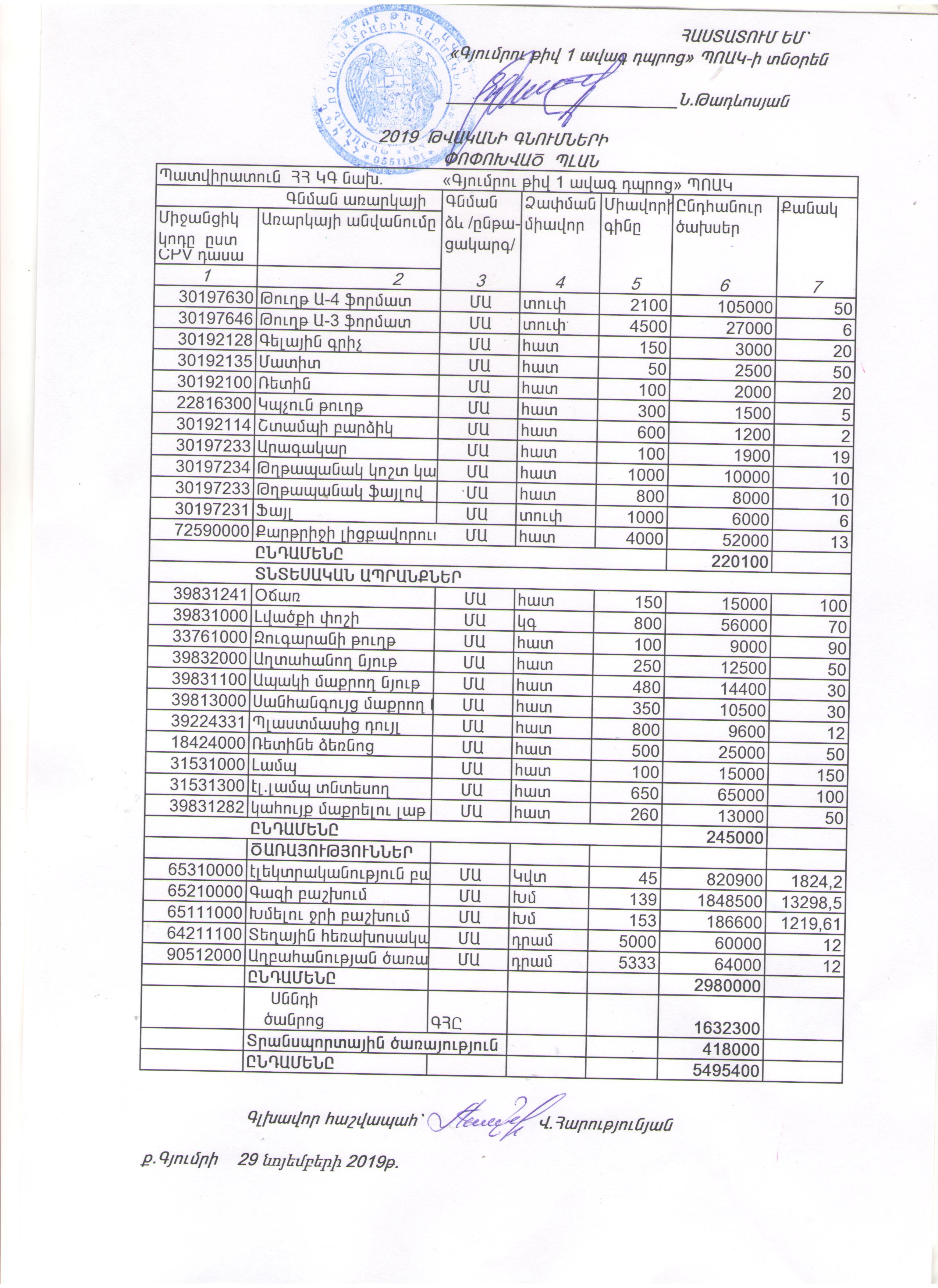 «Հայաստանի հանրային ռադիոընկերություն» ՓԲԸ-ի 2019 թվականի գնումների պլան /փոփոխություն/ առ 29.11.2019թ.