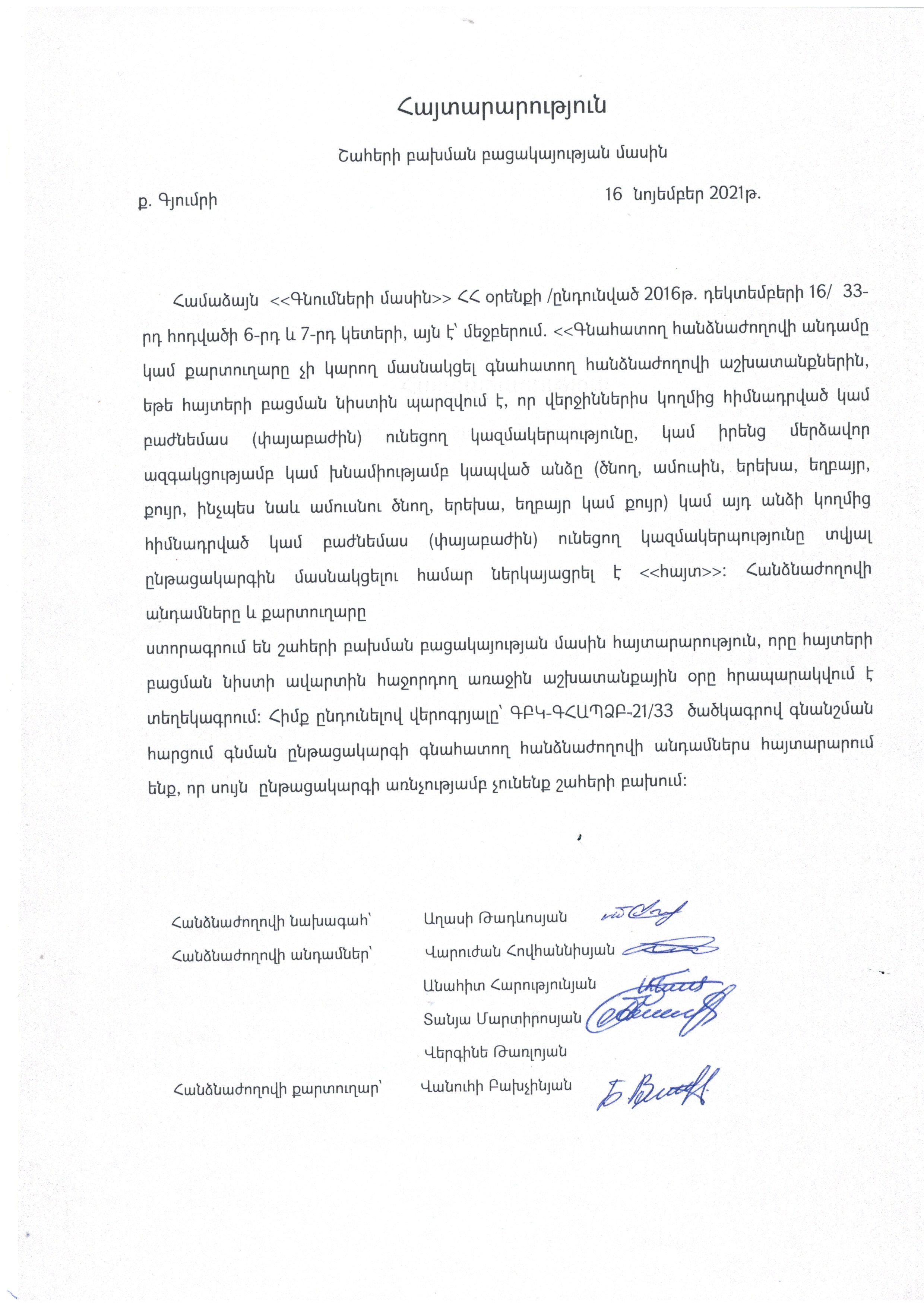 (Հրապարակված է 2021-11-18 15:00:52-ից անժամկետ)