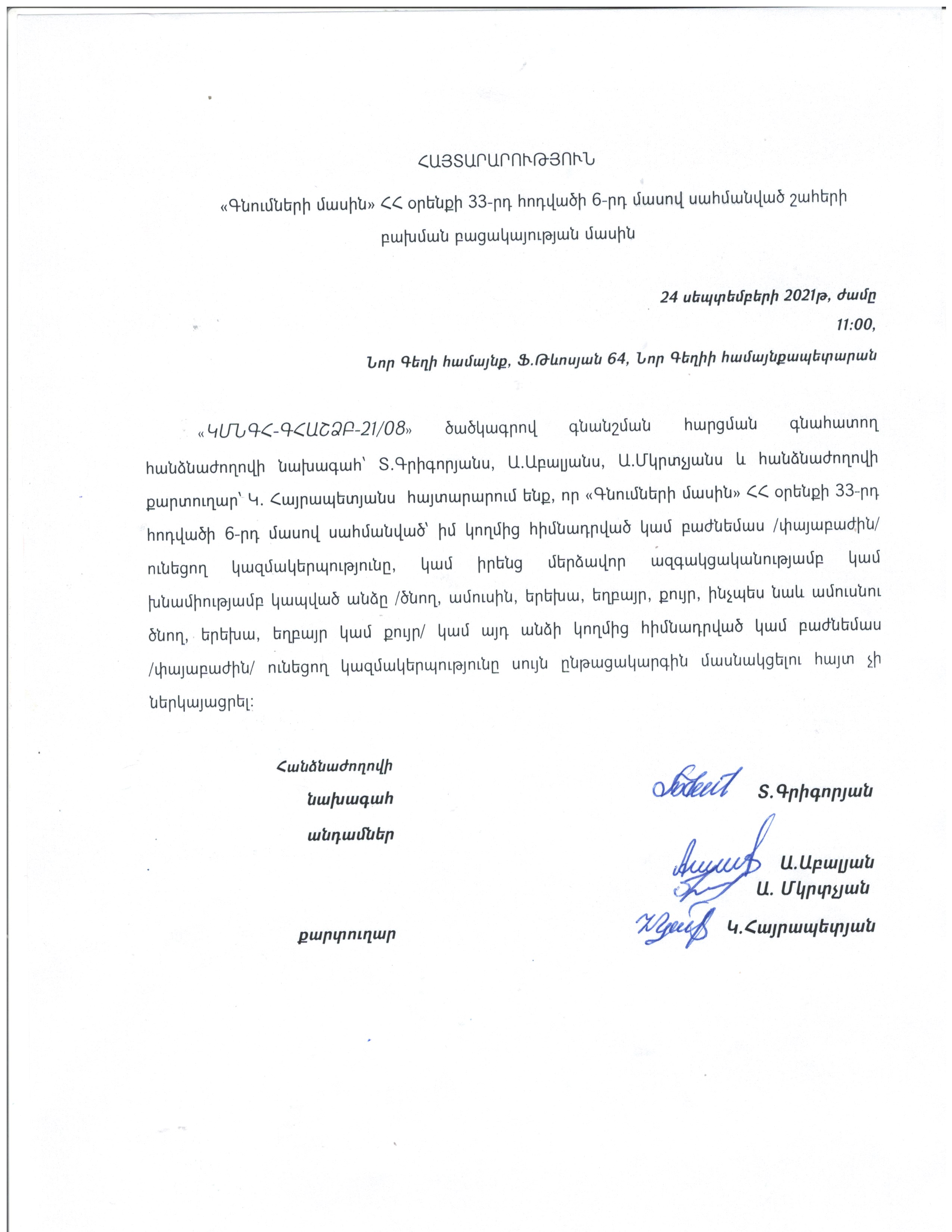 (Հրապարակված է 2021-10-06 11:06:04-ից անժամկետ)