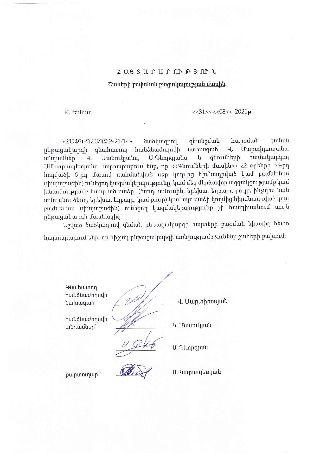 (Հրապարակված է 2021-08-31 17:36:46-ից անժամկետ)