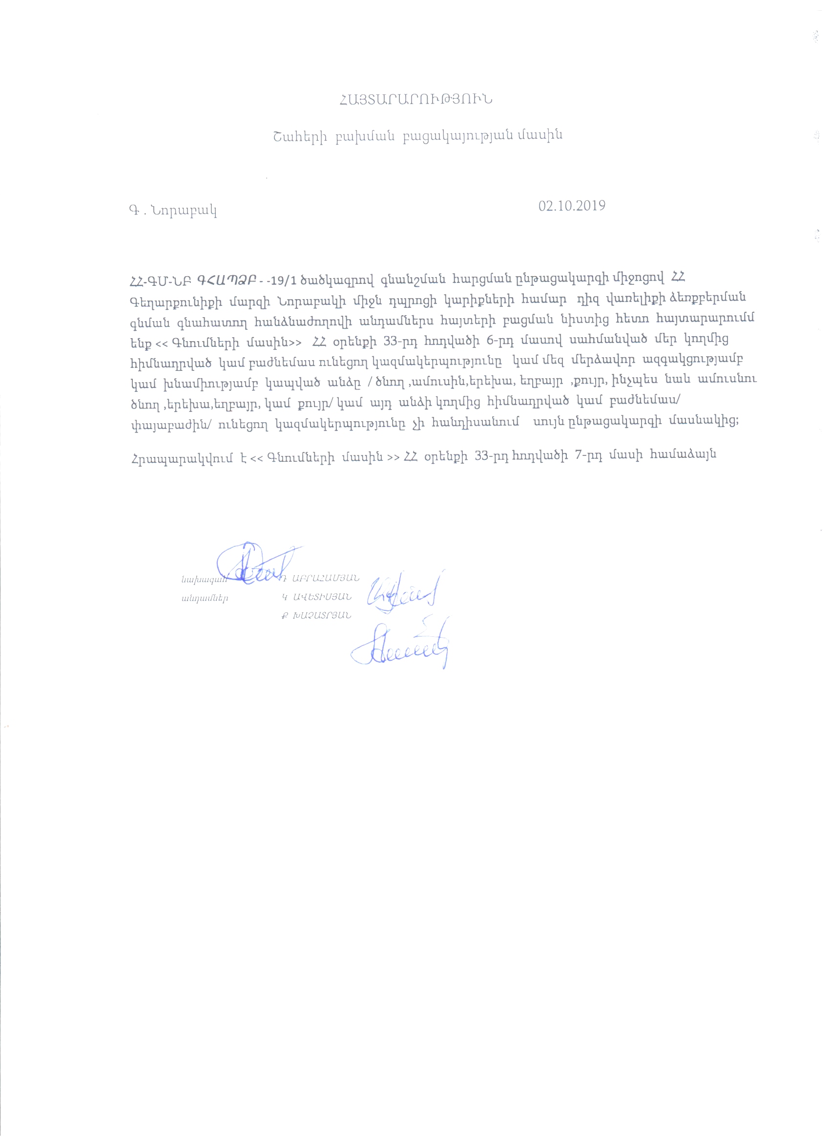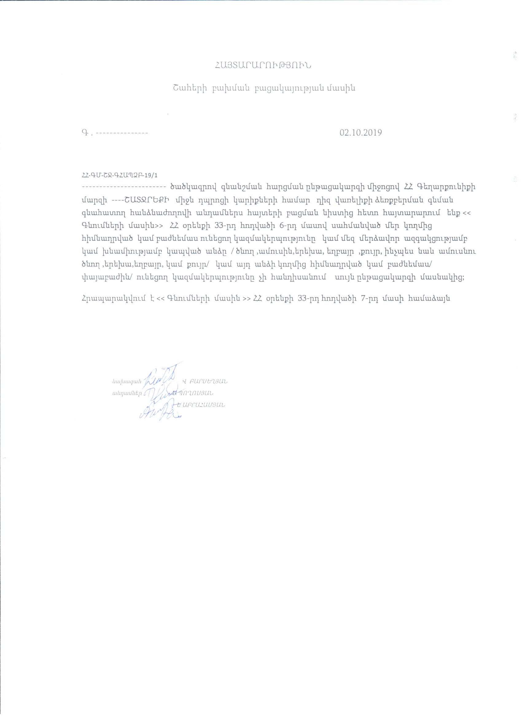 (Հրապարակված է 2019-10-08 21:04:58-ից անժամկետ)