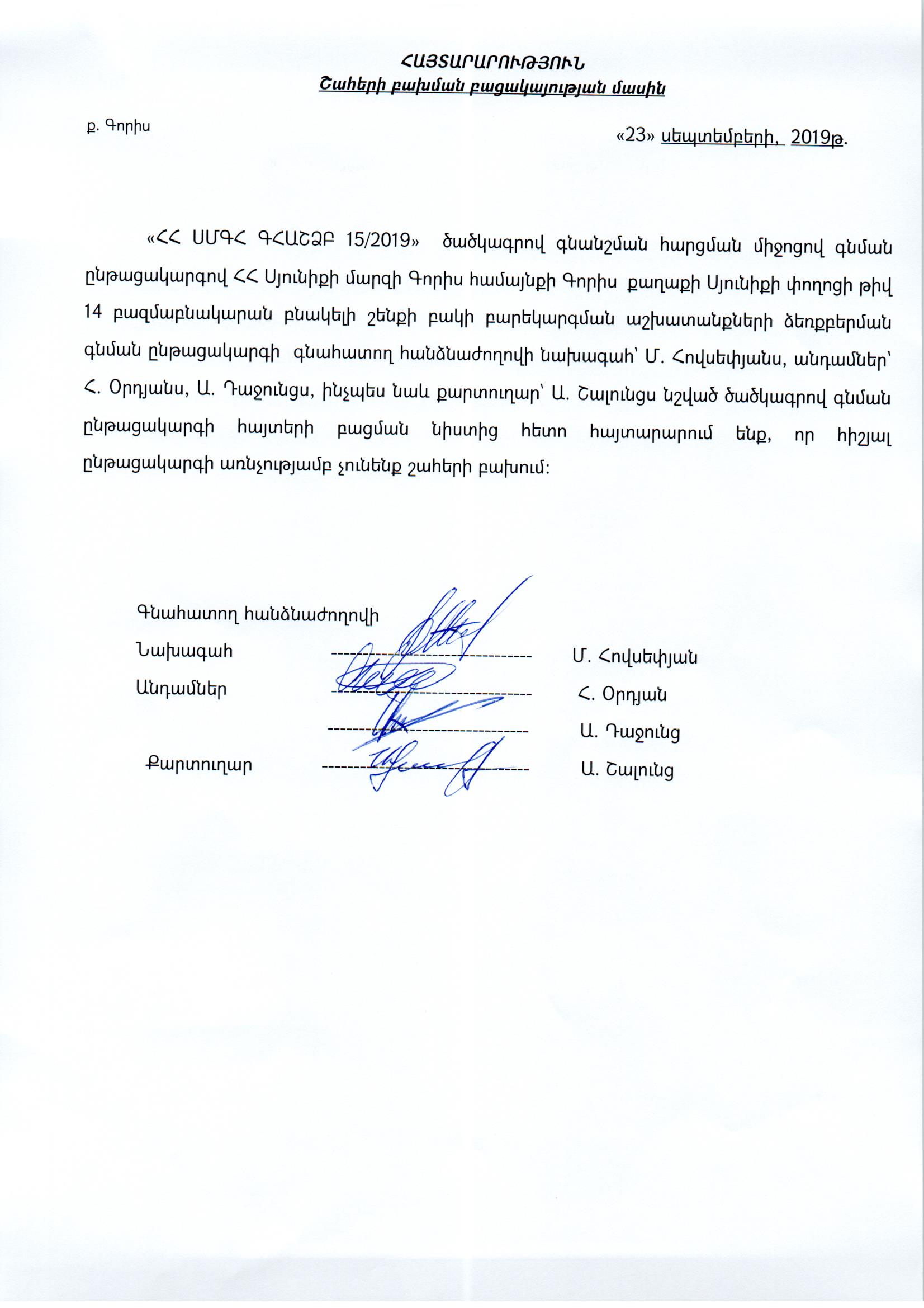 (Հրապարակված է 2019-09-25 17:11:05-ից անժամկետ)