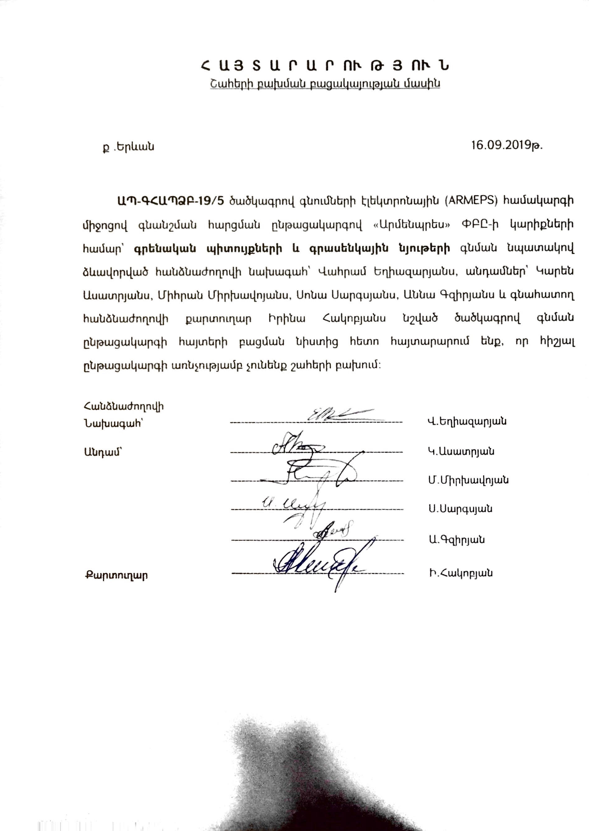 (Հրապարակված է 2019-09-17 16:38:37-ից անժամկետ)