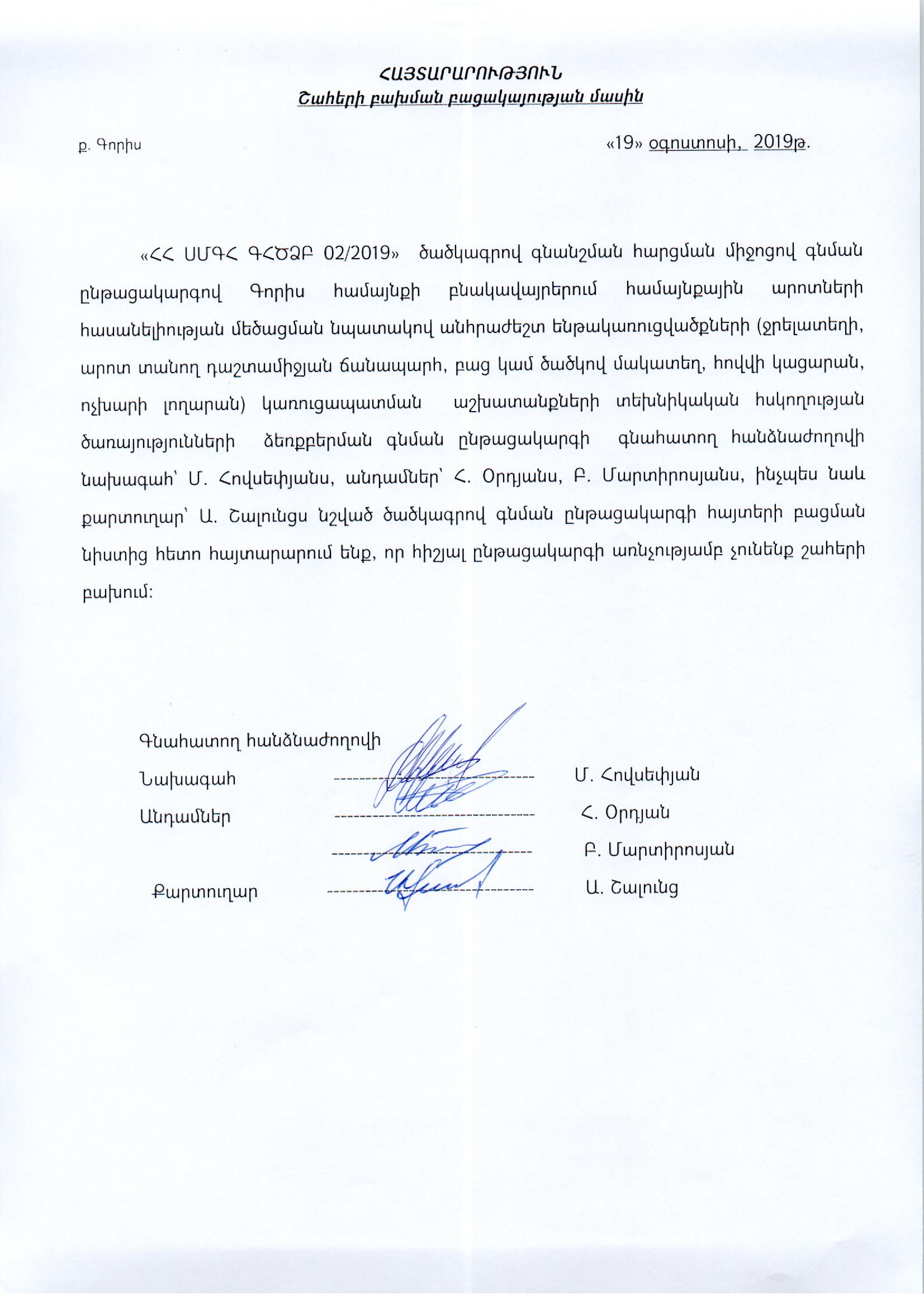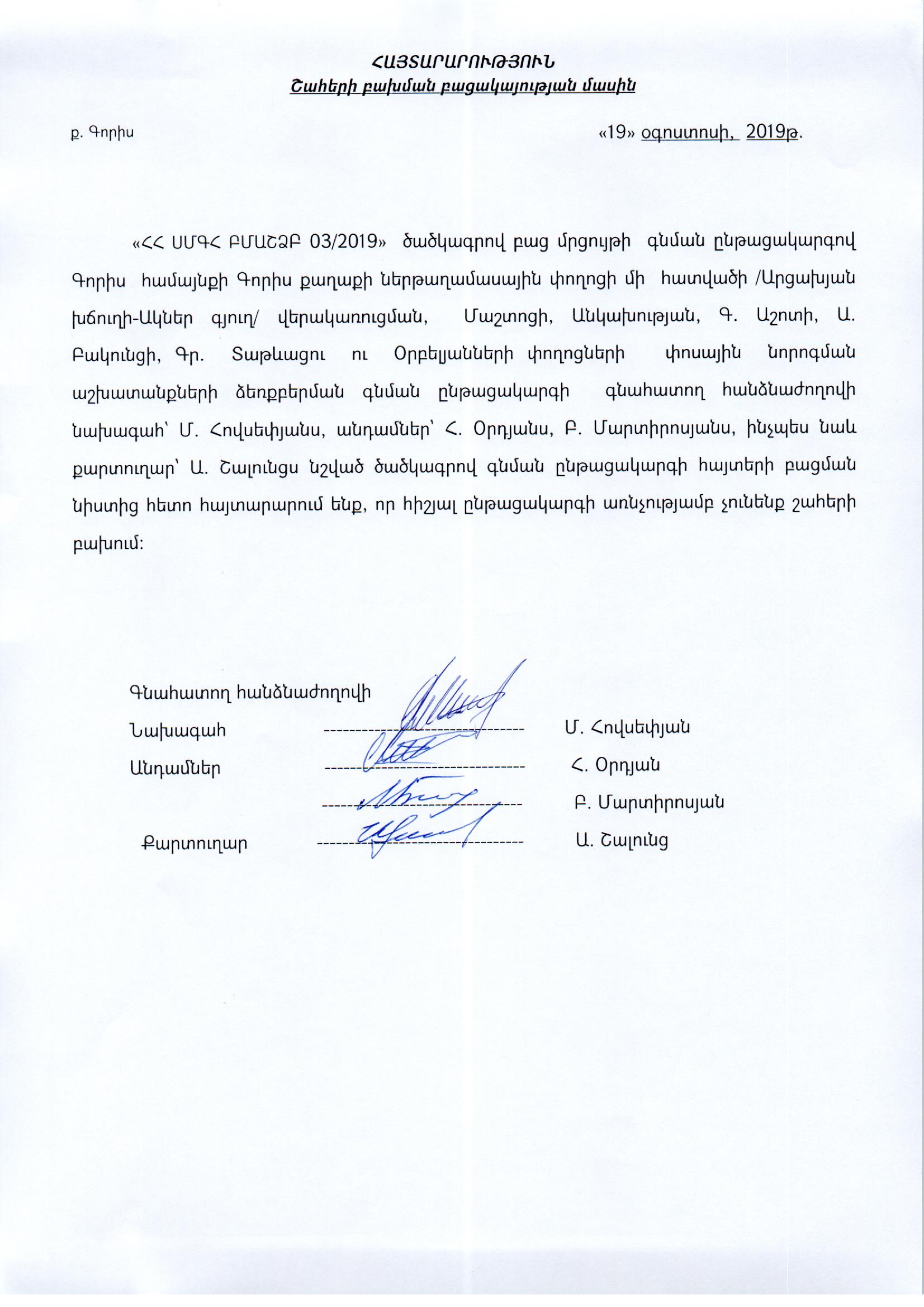 (Հրապարակված է 2019-08-20 10:19:59-ից անժամկետ)