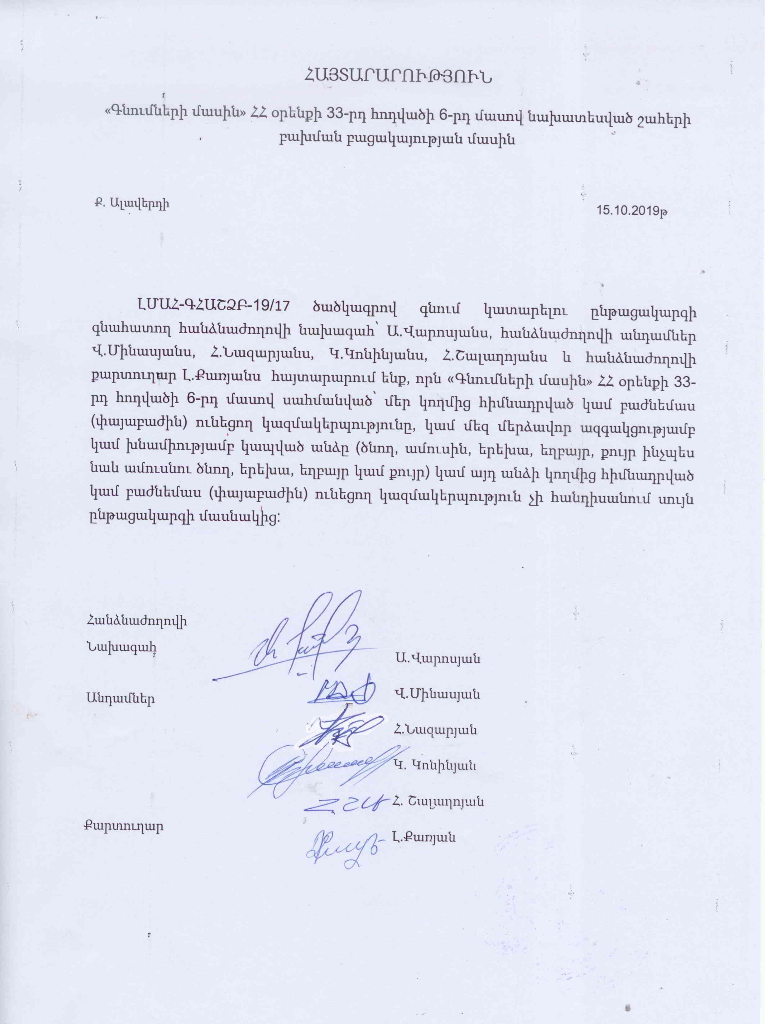 (Հրապարակված է 2019-10-16 15:01:32-ից անժամկետ)