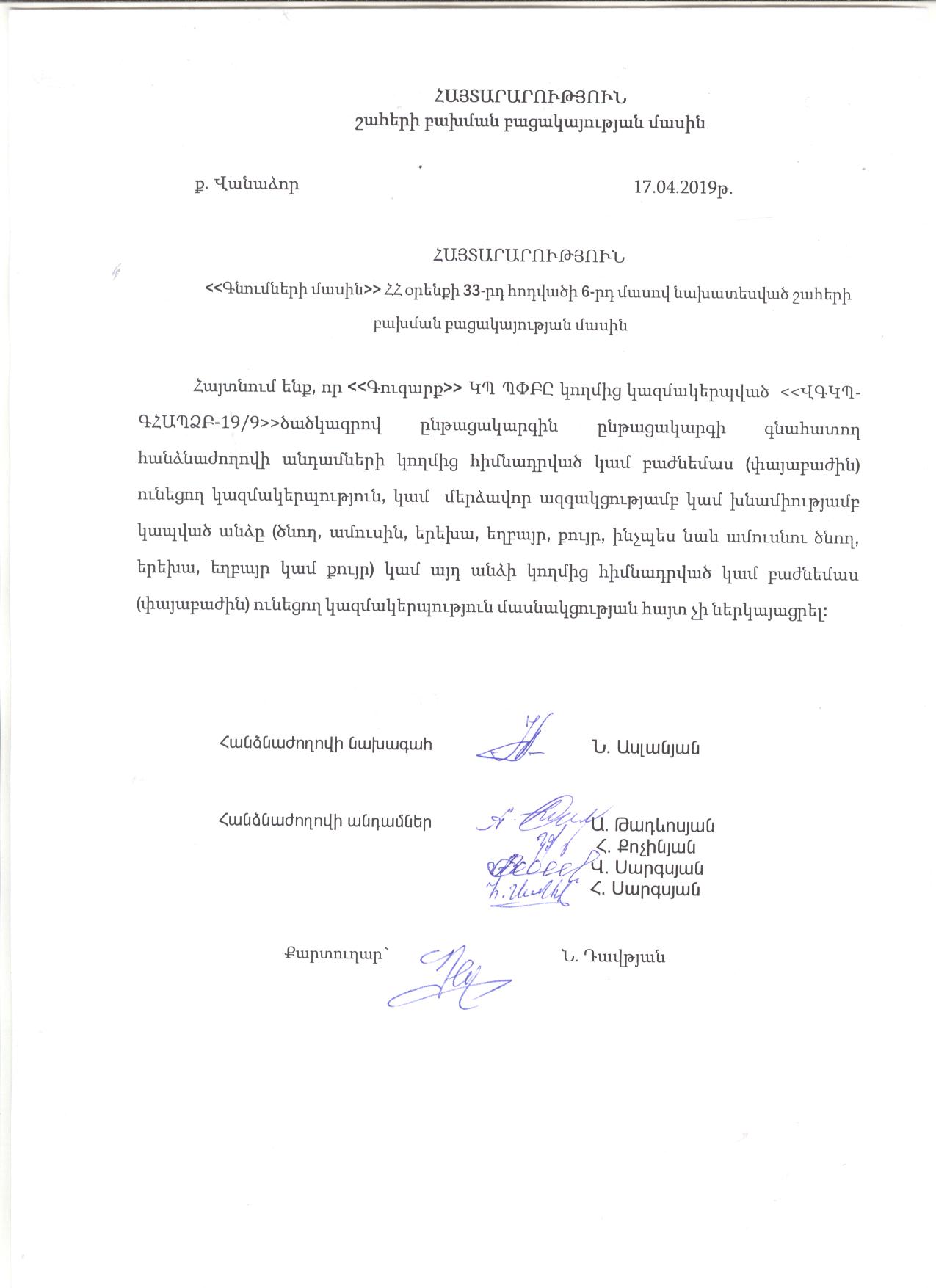 (Հրապարակված է 2019-06-10 12:30:20-ից անժամկետ)
