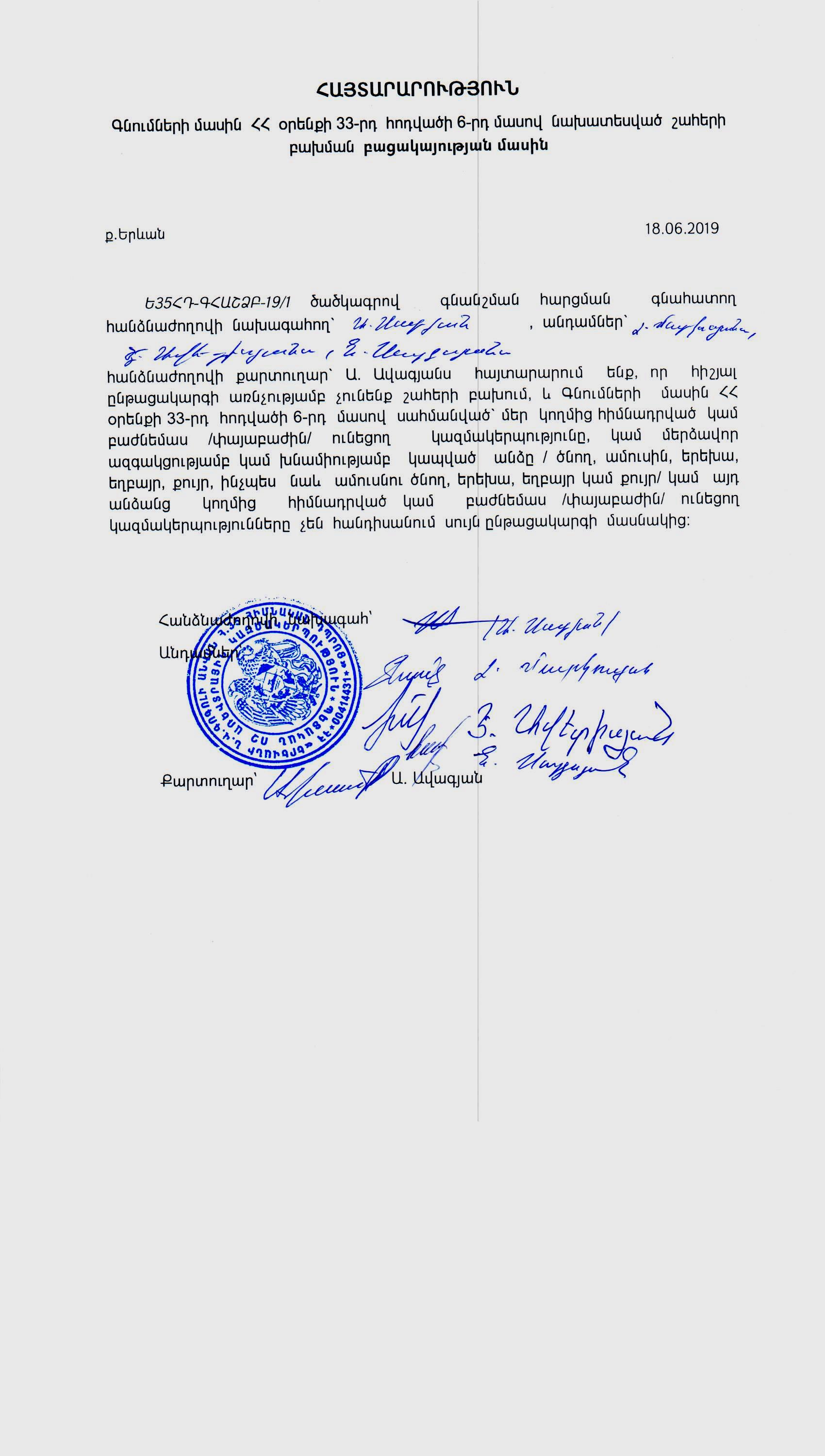 (Հրապարակված է 2019-06-19 13:45:28-ից անժամկետ)
