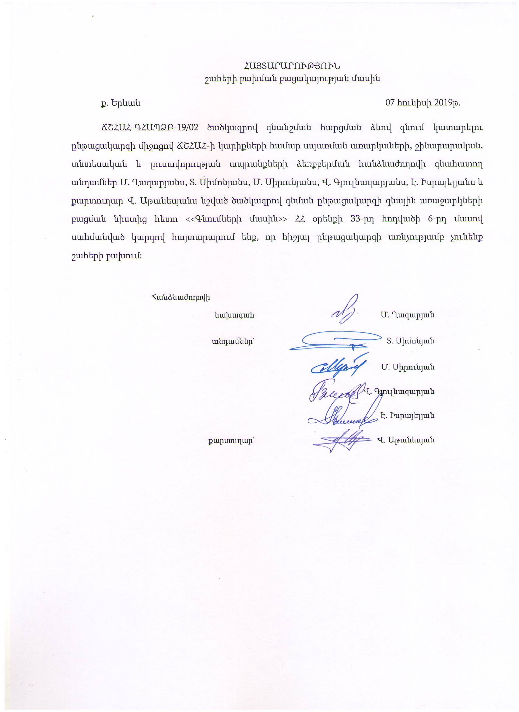 (Հրապարակված է 2019-06-07 16:52:00-ից անժամկետ)