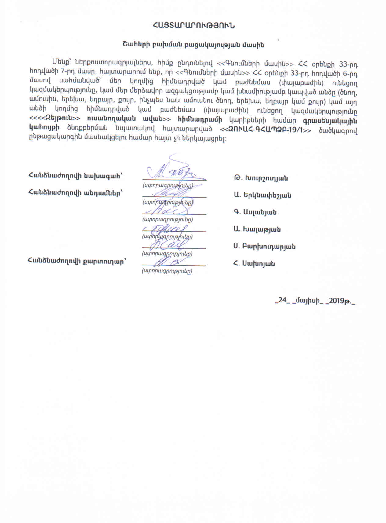 (Հրապարակված է 2019-05-29 18:09:19-ից անժամկետ)