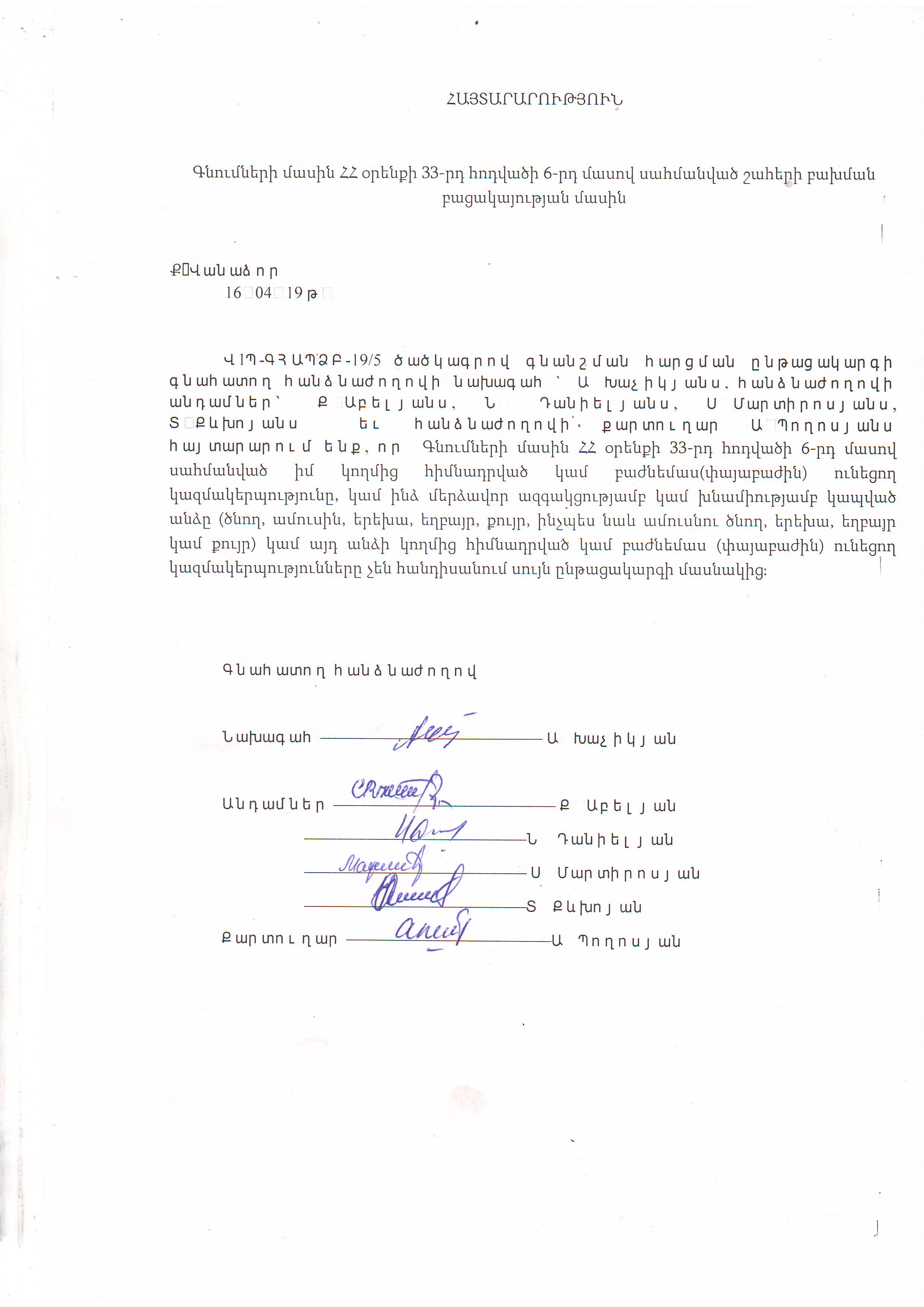 (Հրապարակված է 2019-05-21 17:46:02-ից անժամկետ)
