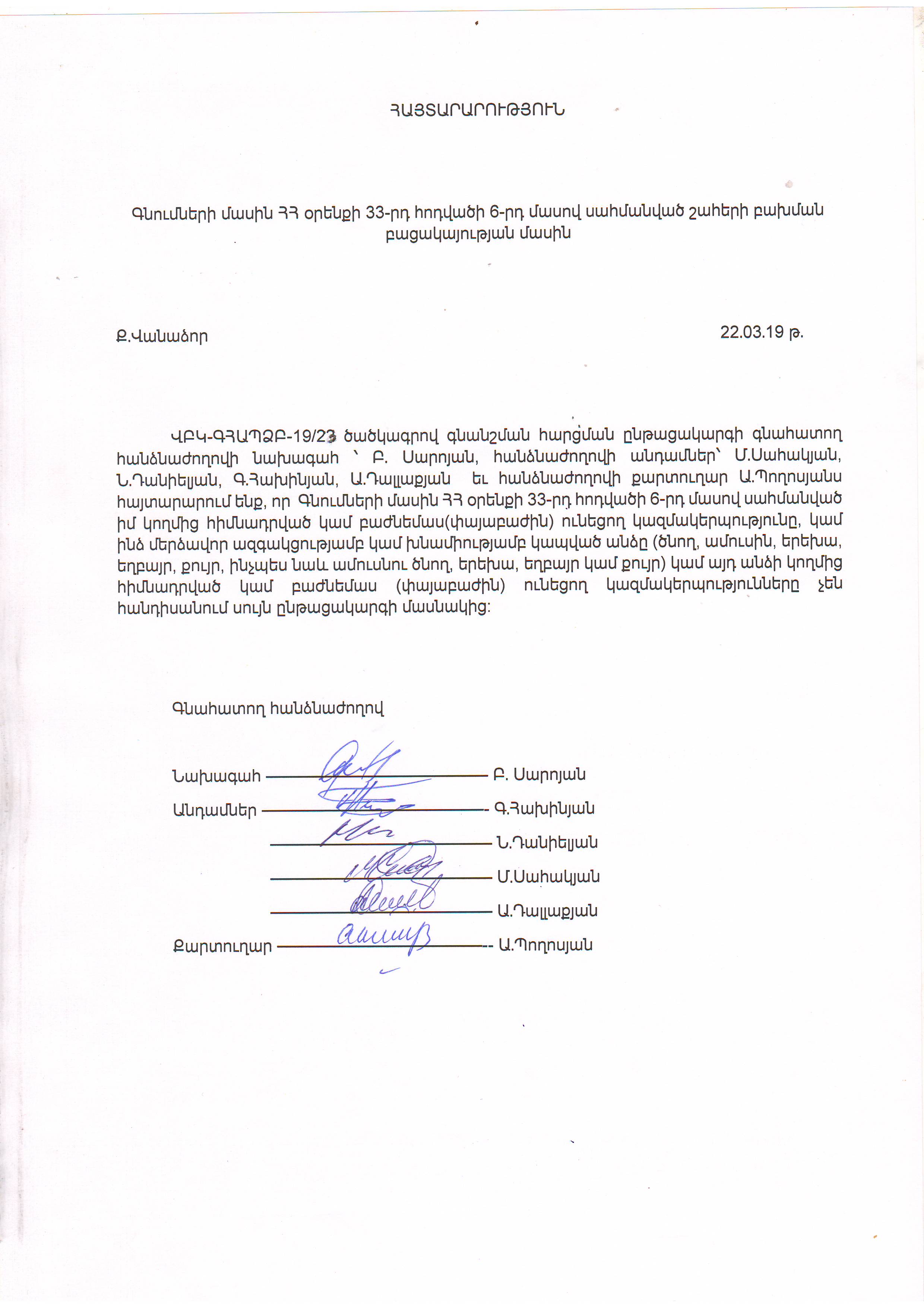 (Հրապարակված է 2019-03-26 08:56:48-ից անժամկետ)