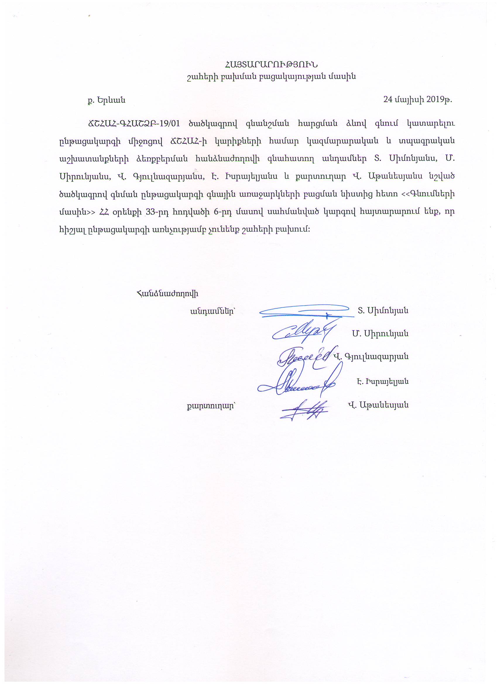(Հրապարակված է 2019-05-24 14:19:45-ից անժամկետ)
