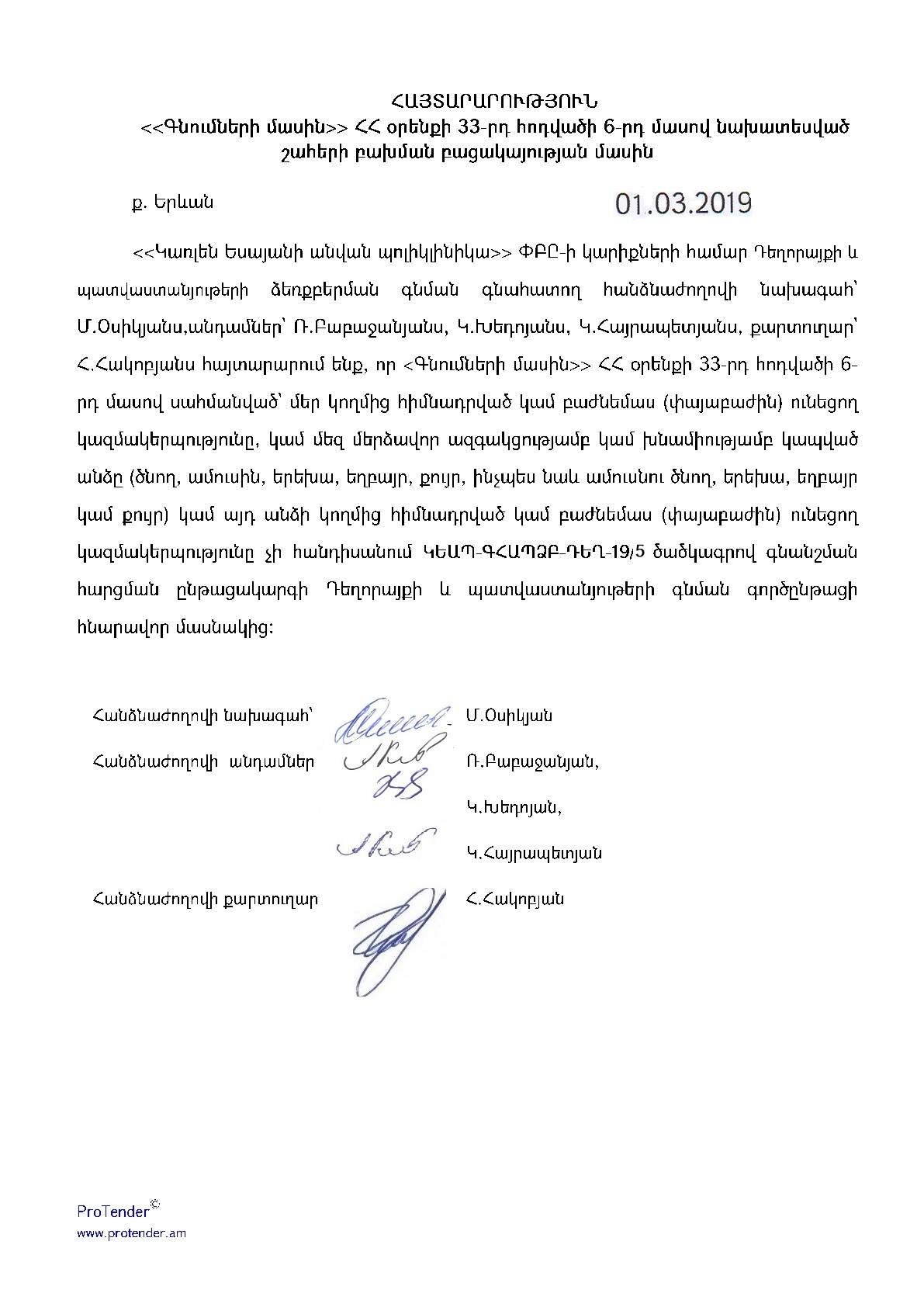 (Հրապարակված է 2019-03-15 17:14:49-ից անժամկետ)