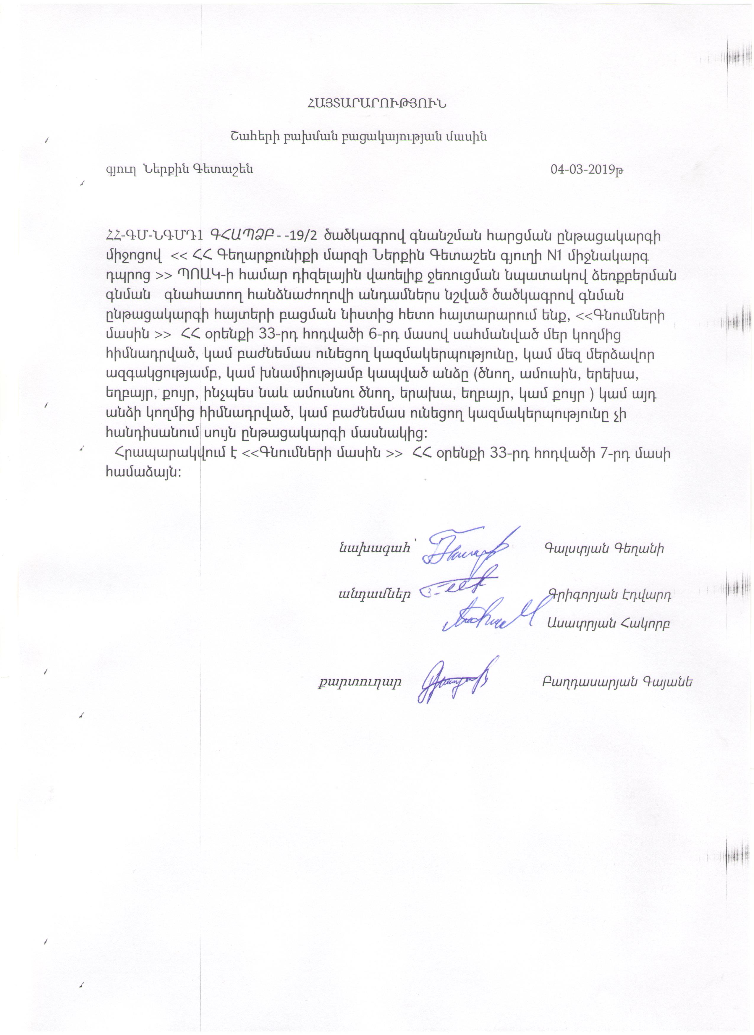 (Հրապարակված է 2019-03-05 10:22:27-ից անժամկետ)