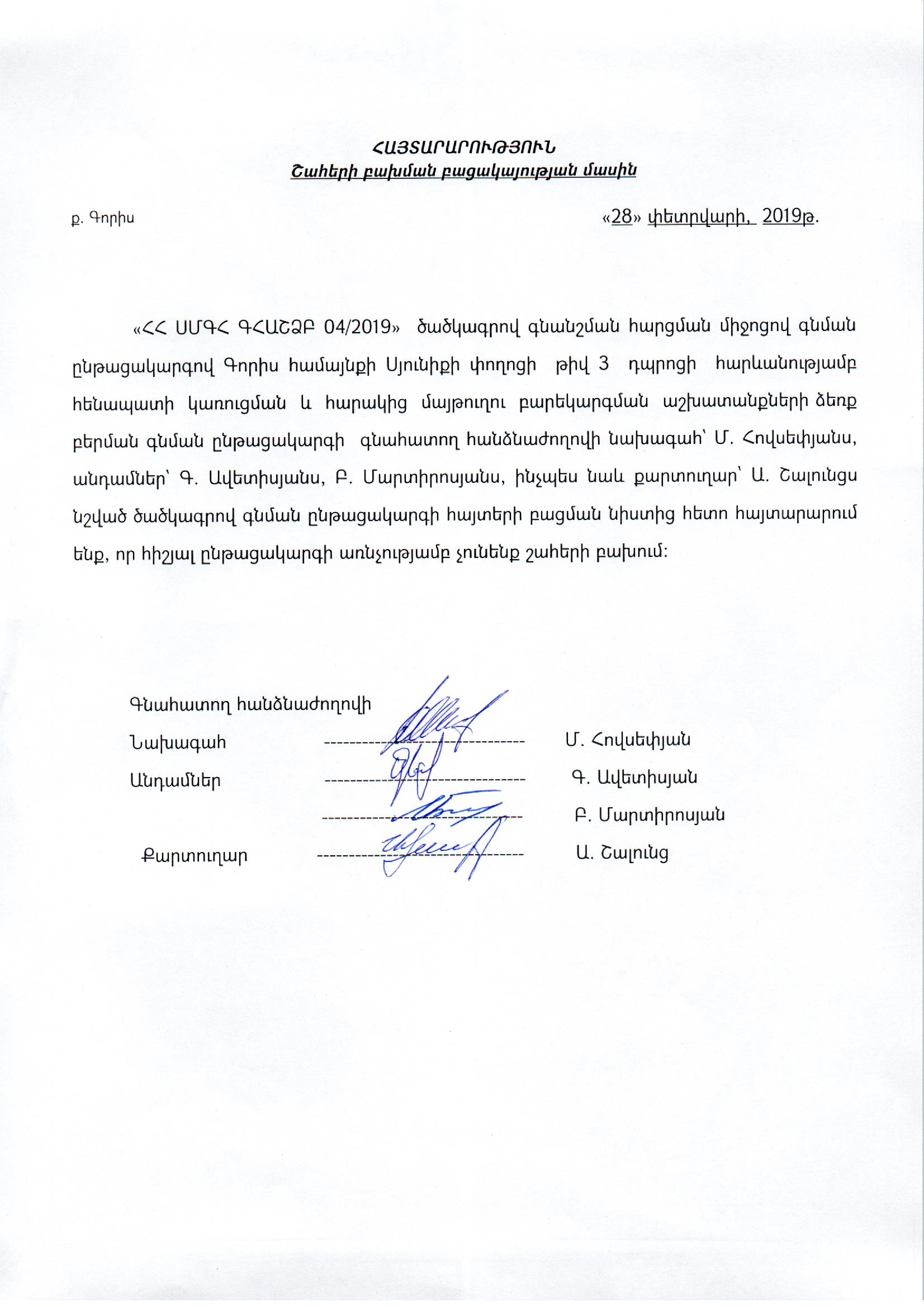(Հրապարակված է 2019-03-01 12:04:59-ից անժամկետ)