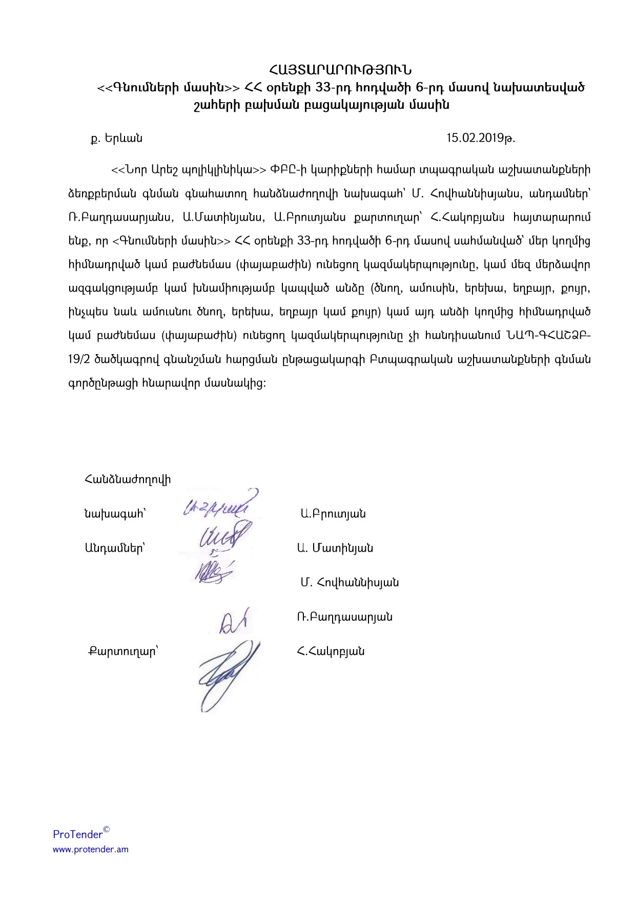 (Հրապարակված է 2019-02-27 10:18:31-ից անժամկետ)