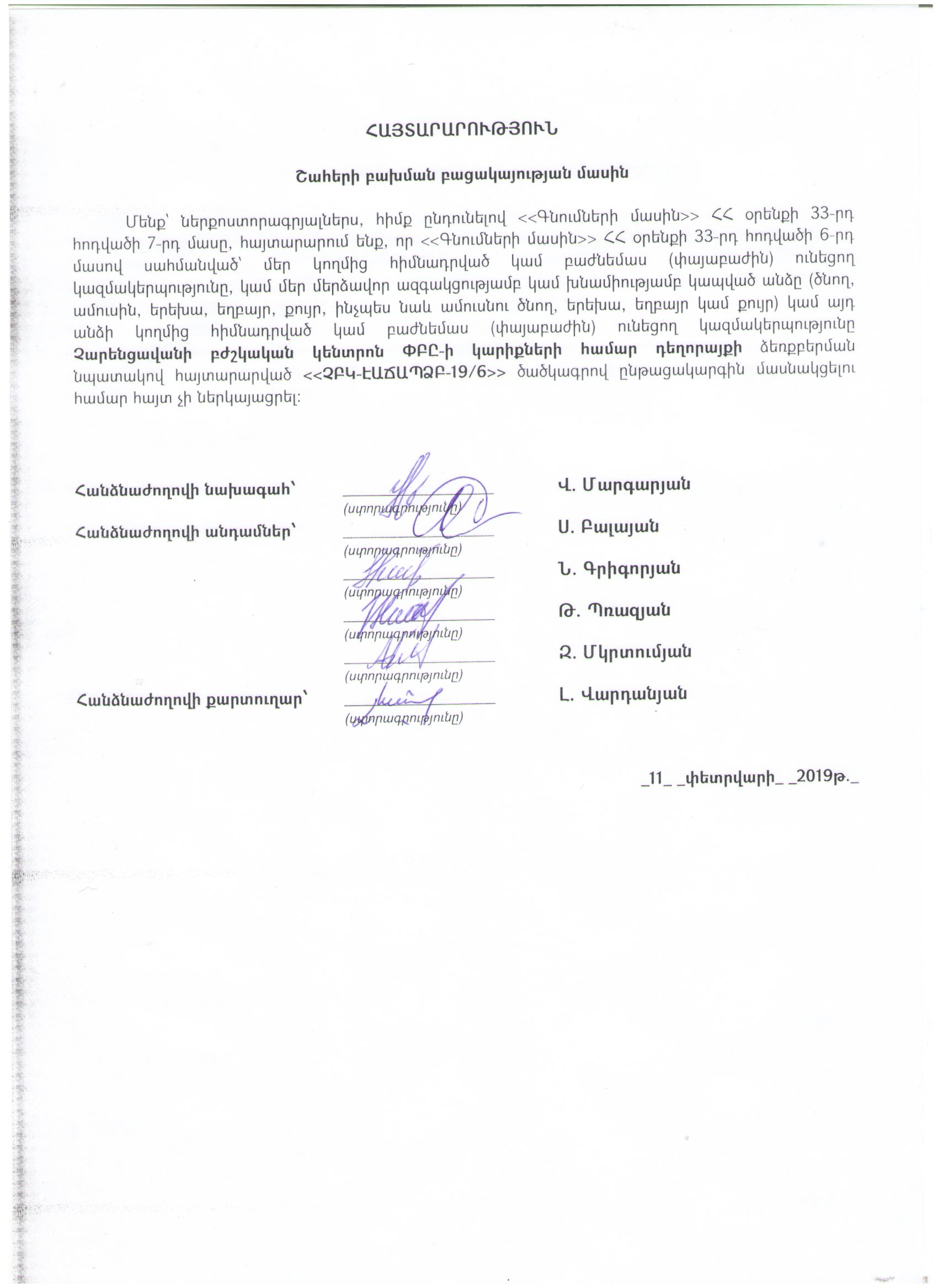 (Հրապարակված է 2019-02-13 10:38:00-ից անժամկետ)