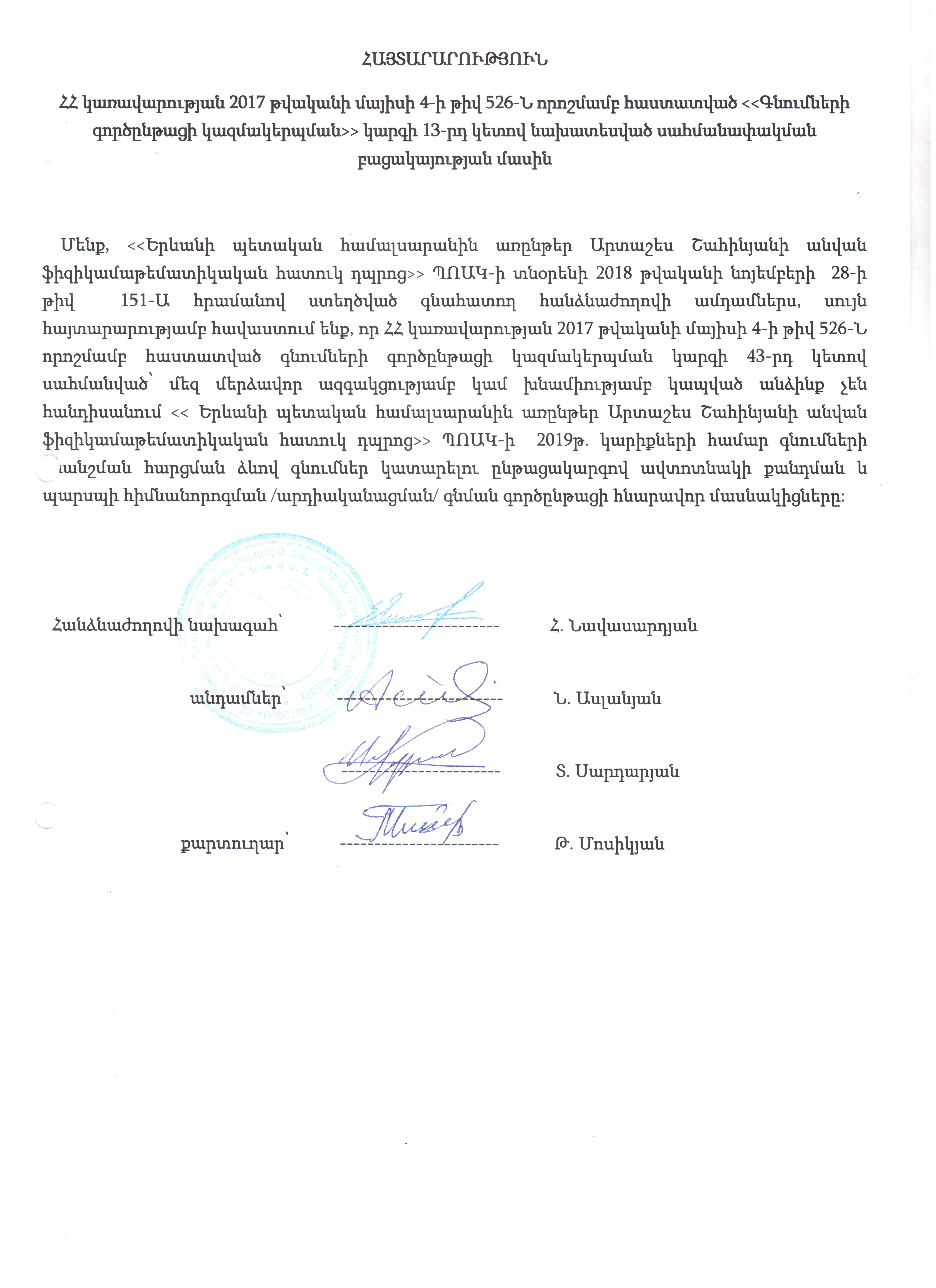 (Հրապարակված է 2018-12-21 15:02:07-ից անժամկետ)