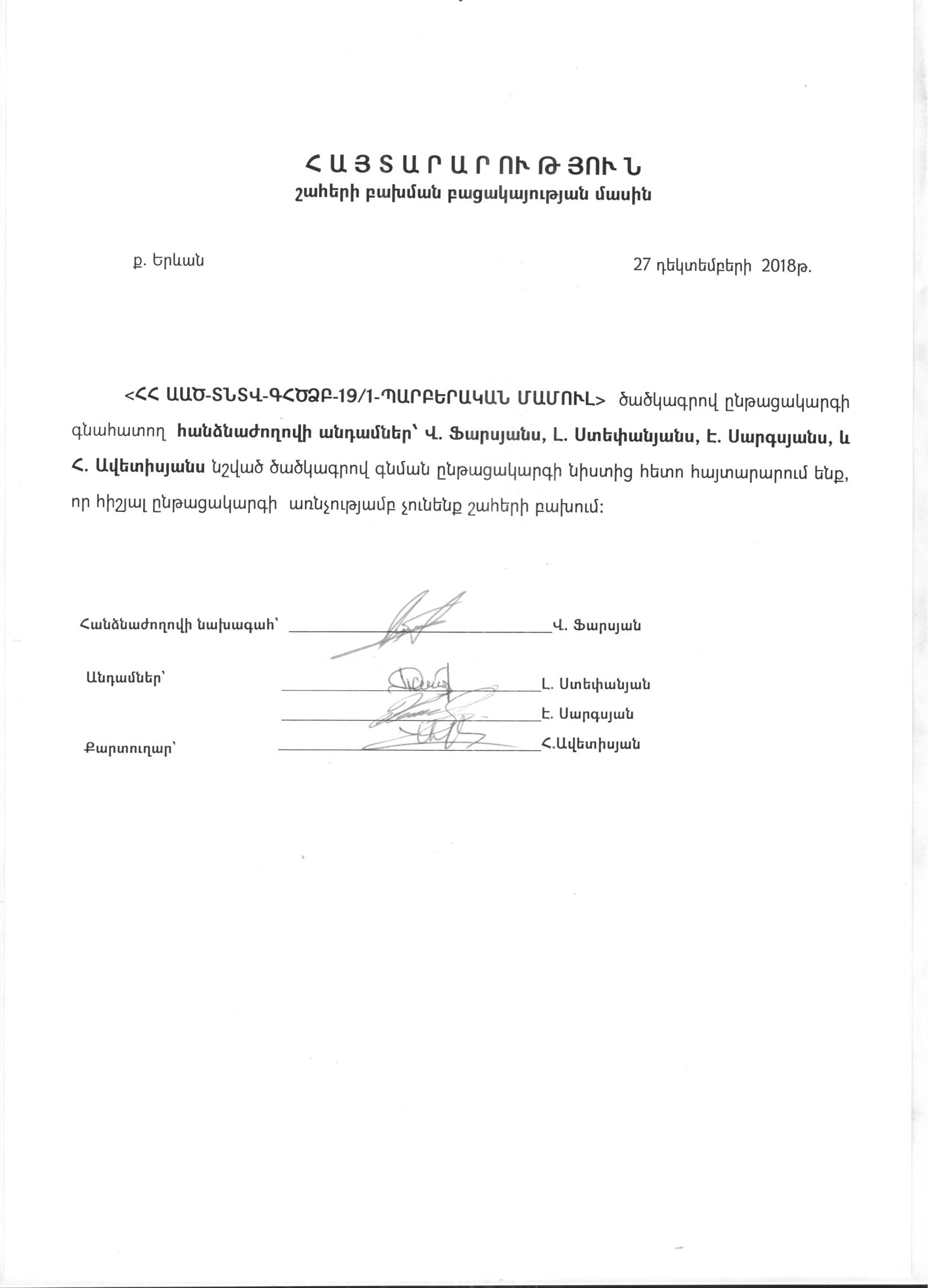 (Հրապարակված է 2018-12-27 17:53:41-ից անժամկետ)