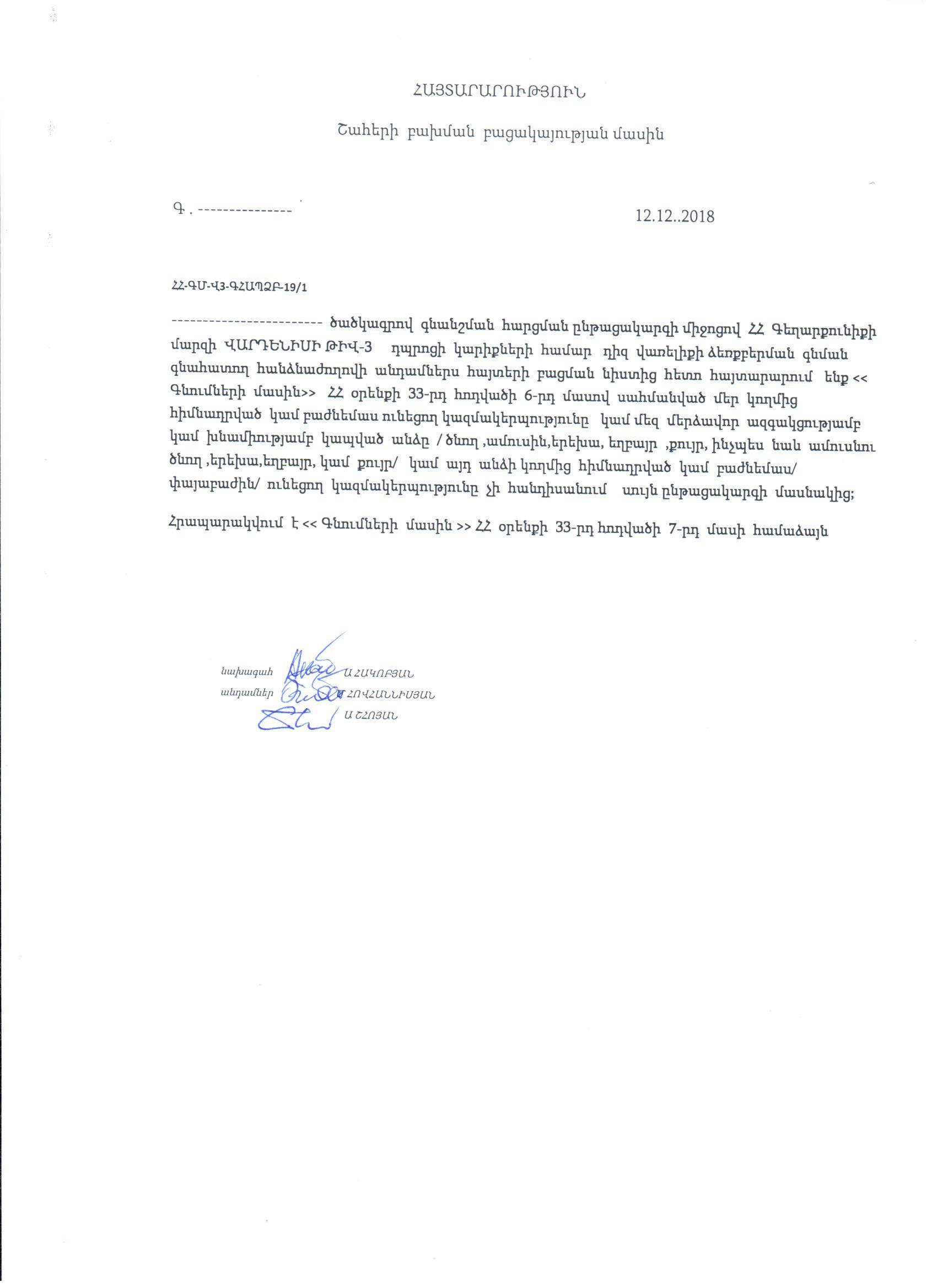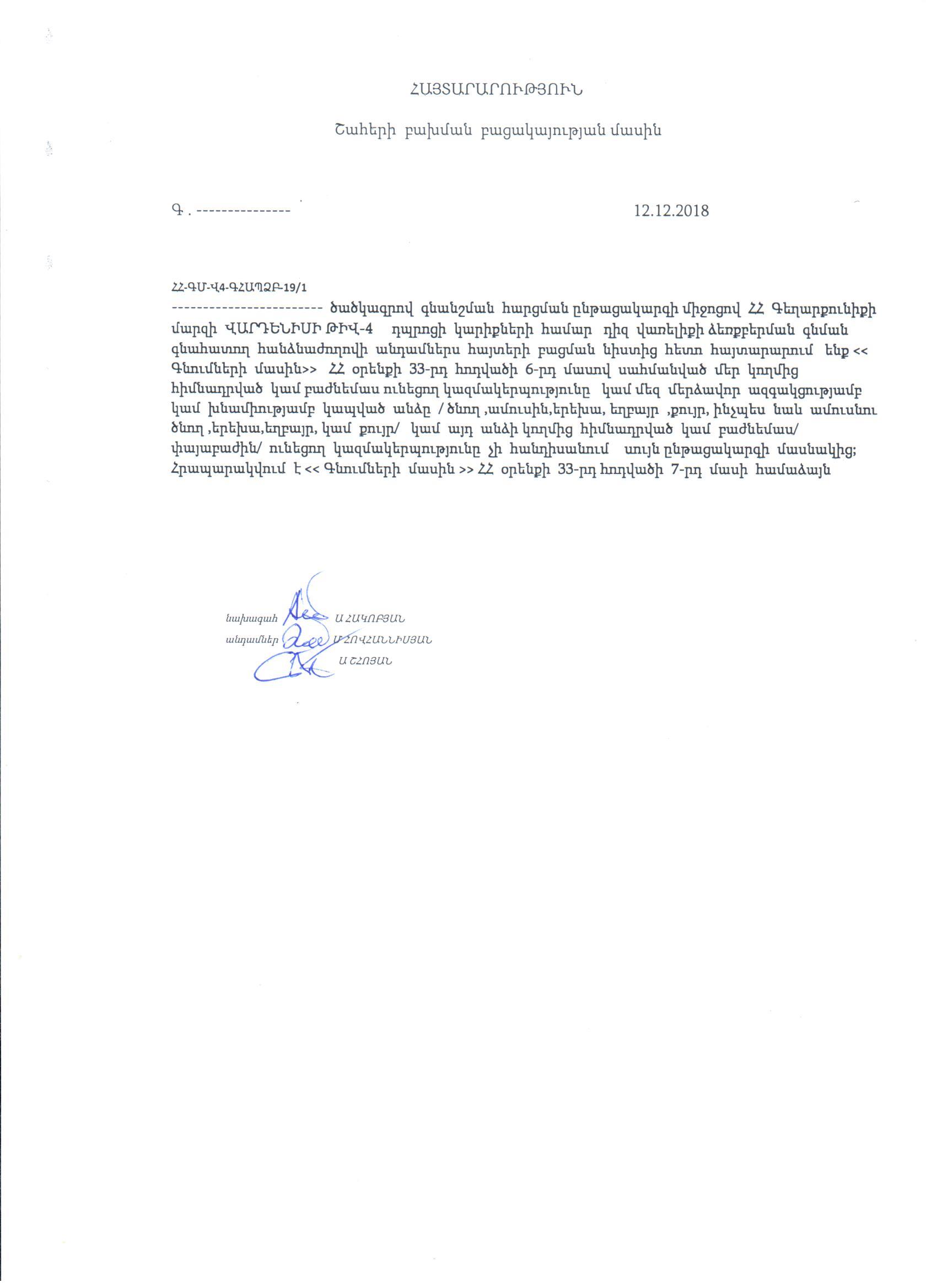 (Հրապարակված է 2018-12-14 11:29:42-ից անժամկետ)