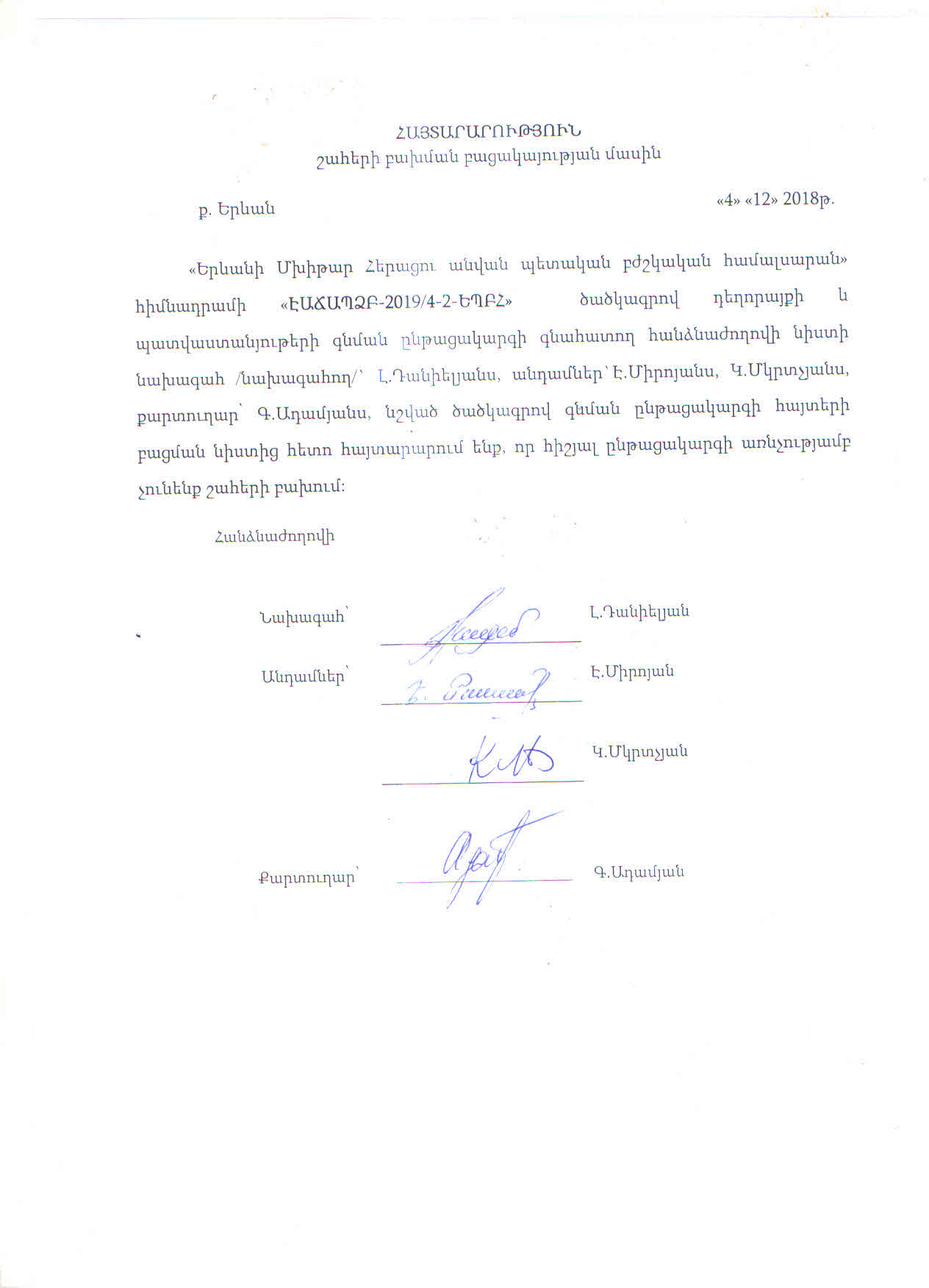 (Հրապարակված է 2018-12-05 10:40:57-ից անժամկետ)