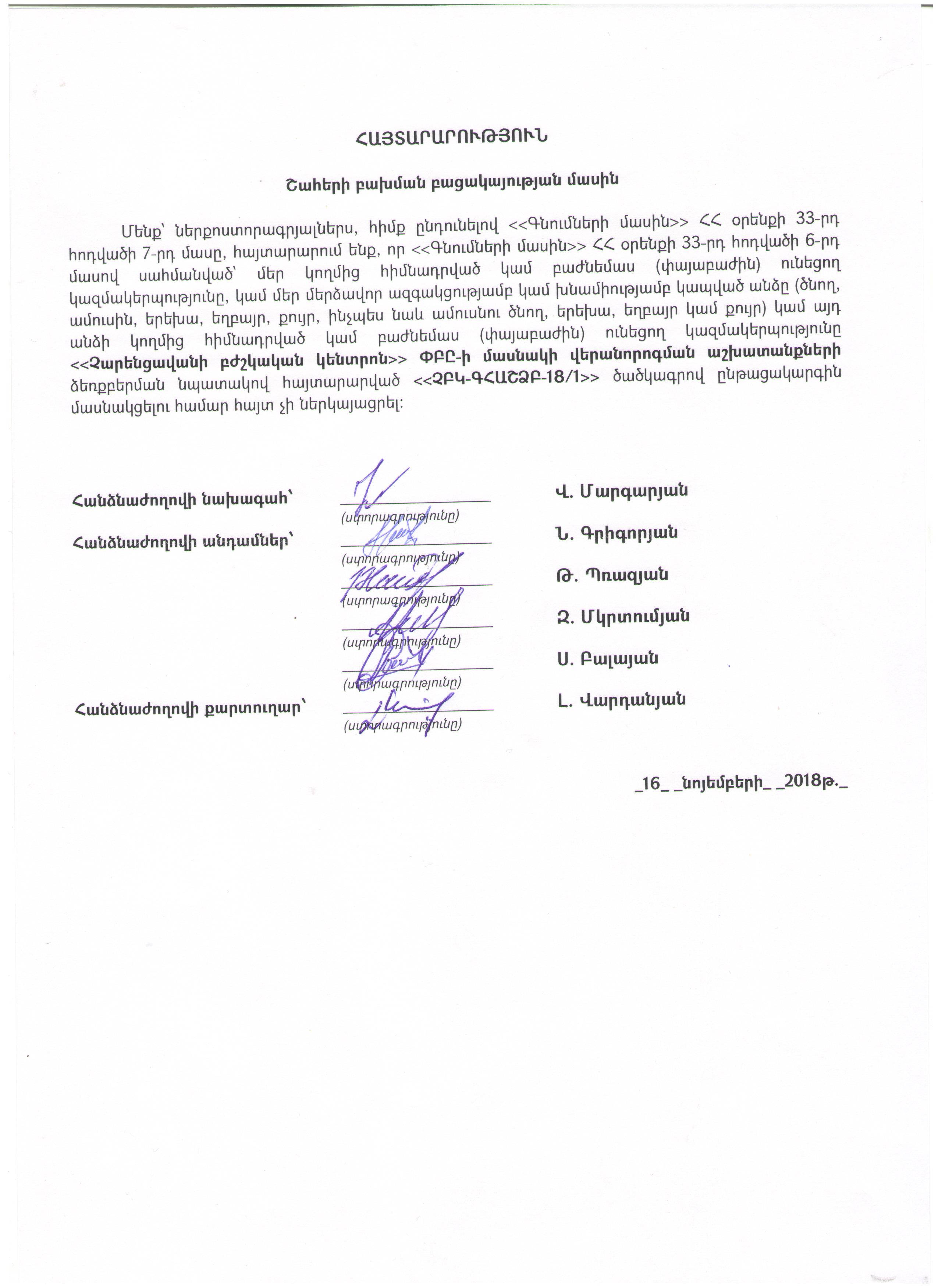 (Հրապարակված է 2018-11-16 17:43:01-ից անժամկետ)