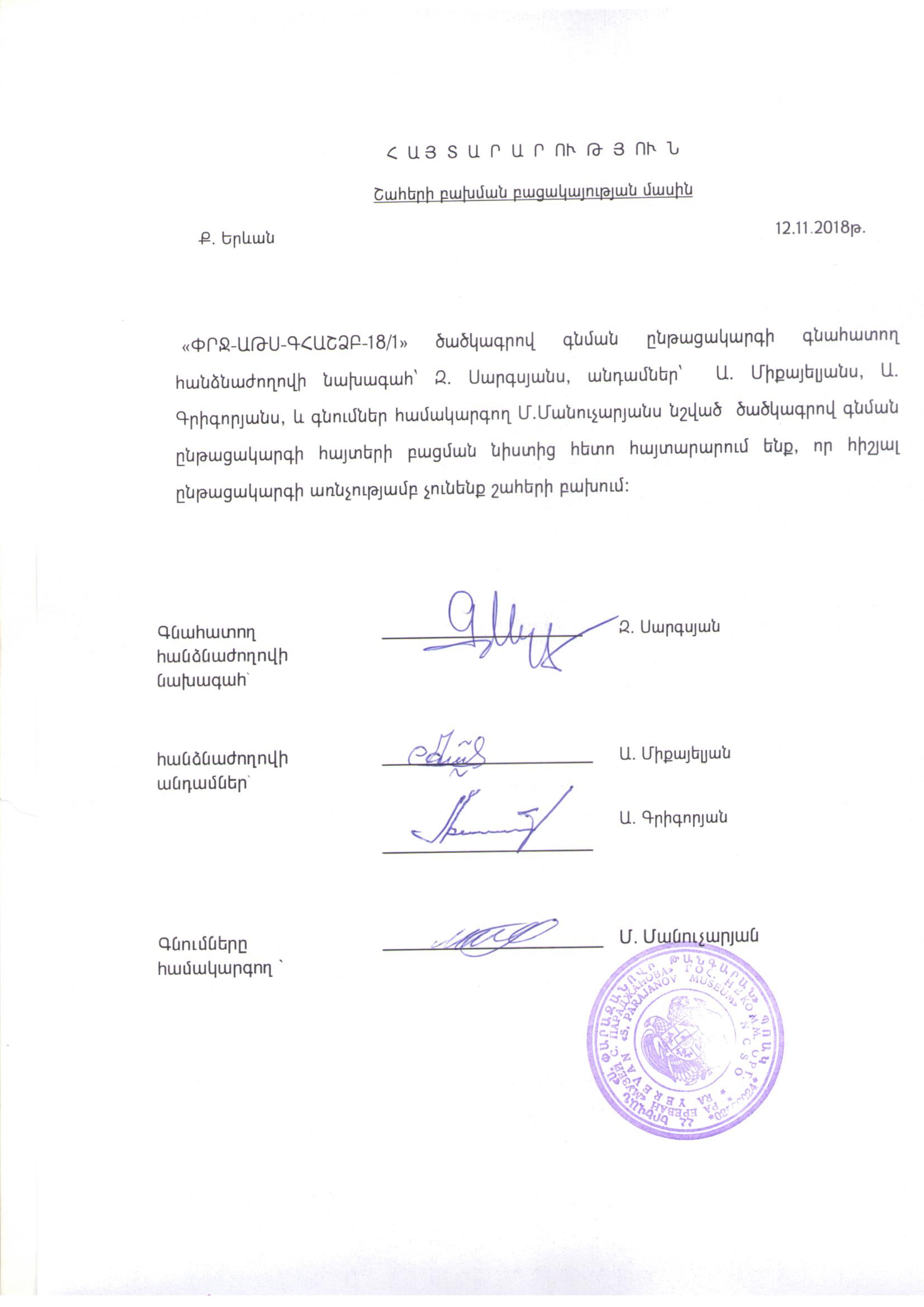 (Հրապարակված է 2018-11-13 12:55:35-ից անժամկետ)