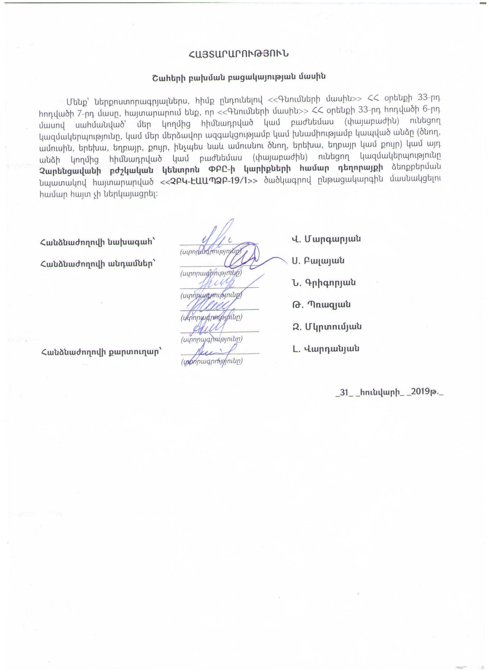 (Հրապարակված է 2019-02-05 23:59:57-ից անժամկետ)