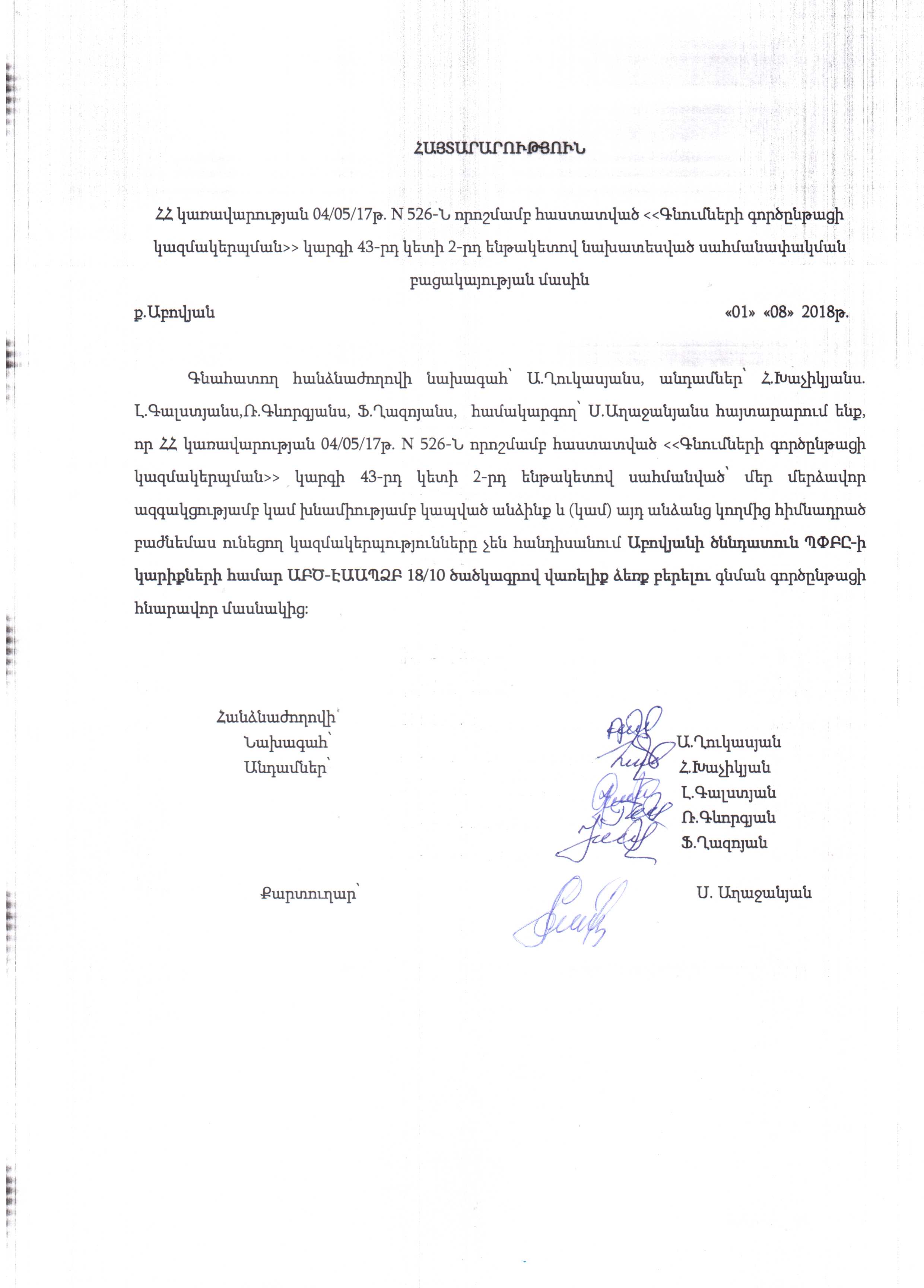 (Հրապարակված է 2018-08-10 10:44:02-ից անժամկետ)