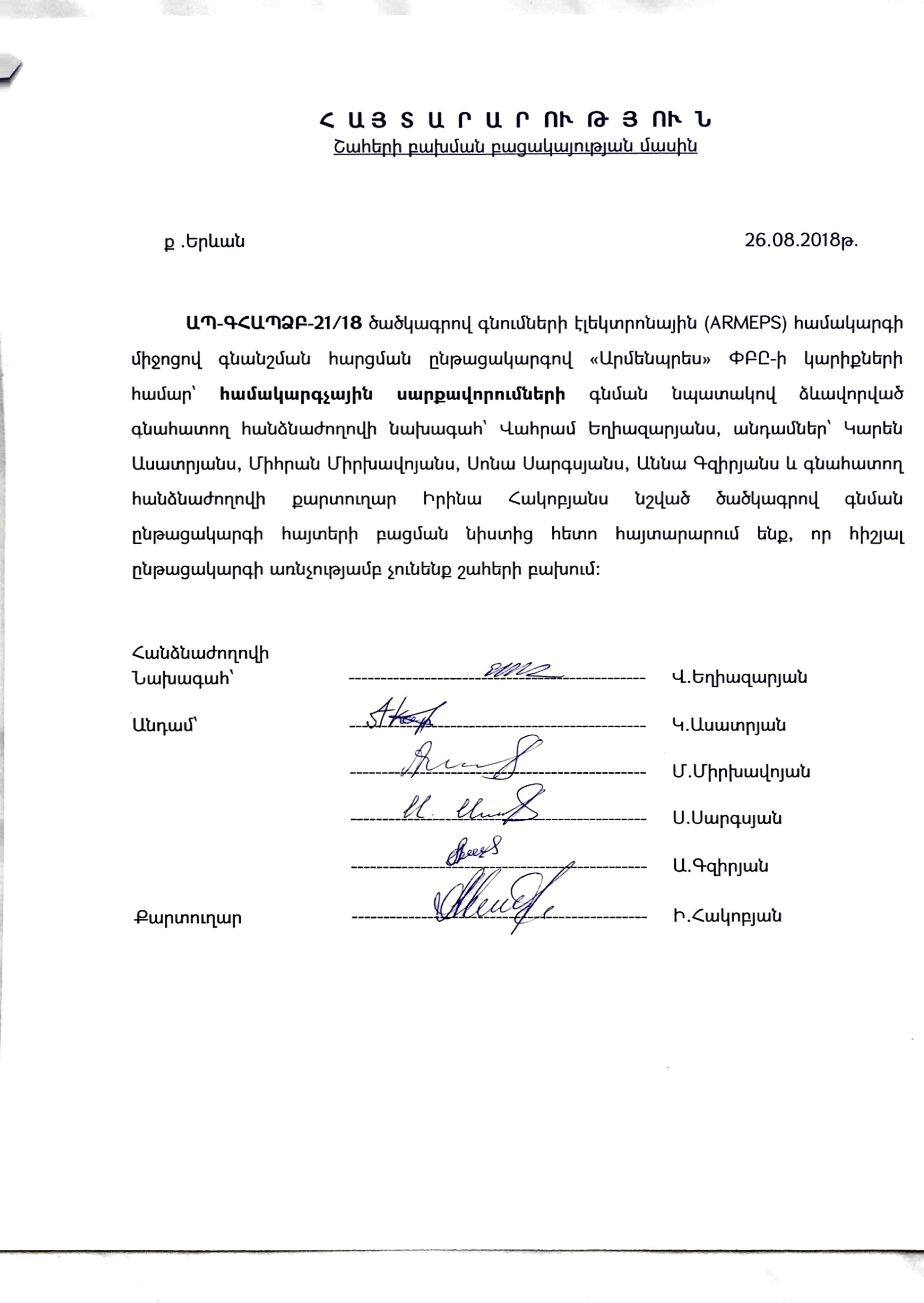 (Հրապարակված է 2018-09-27 09:56:00-ից անժամկետ)